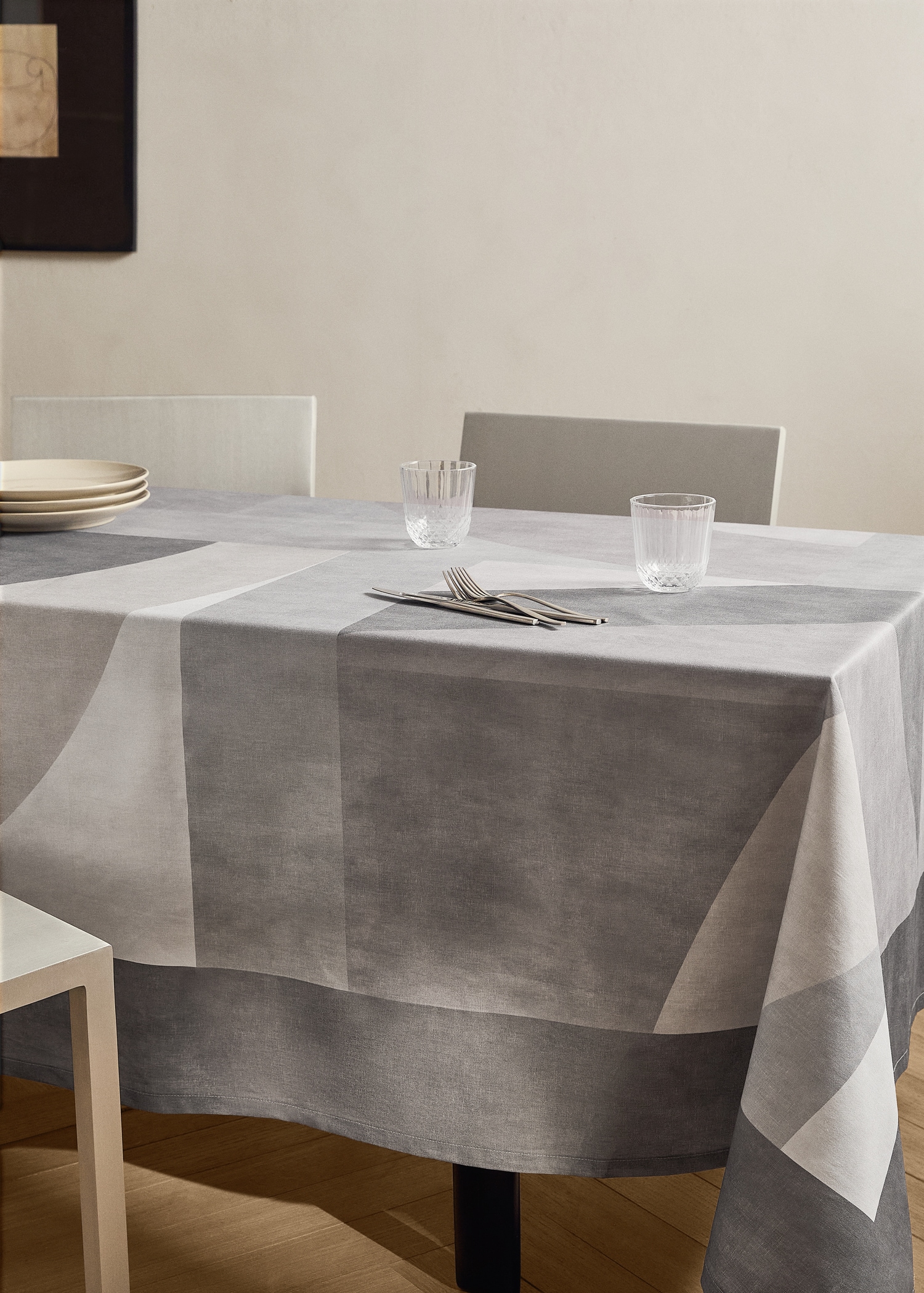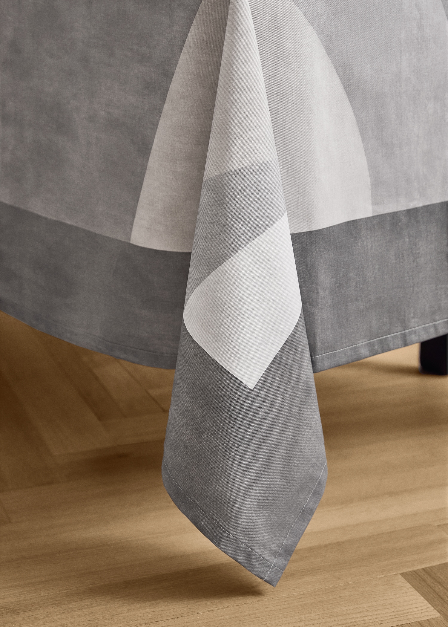 Seats 6 to 8 people. Size: 150x250cm. Geometric print. Two-tone design. Decorate your table with a special touch