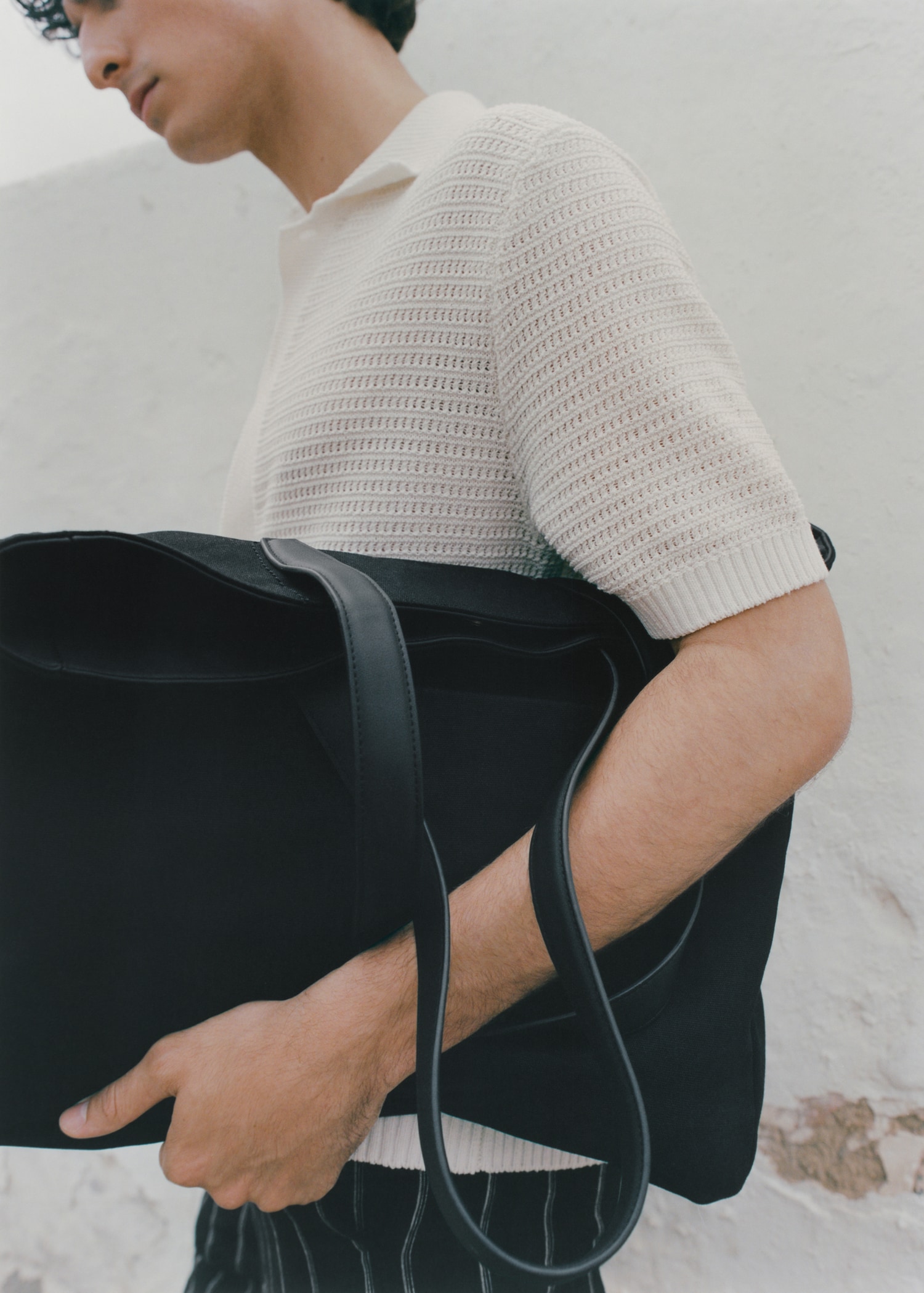 Tote design. 100% cotton fabric. Outer pocket. Interior pocket with zipper closure. 17.72×17.32×5.91 in (Length x Height x Width)