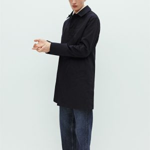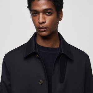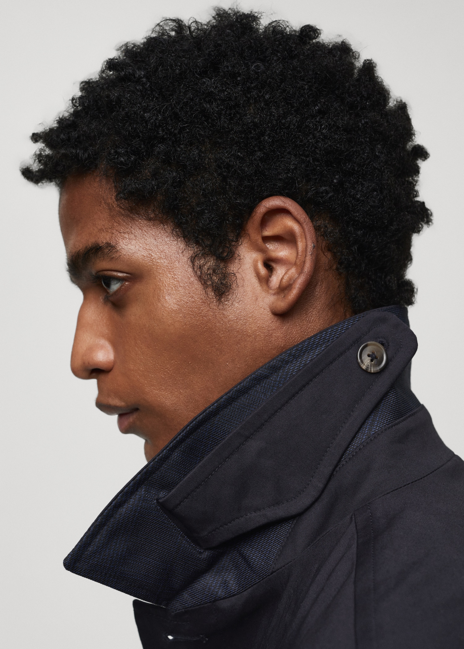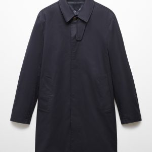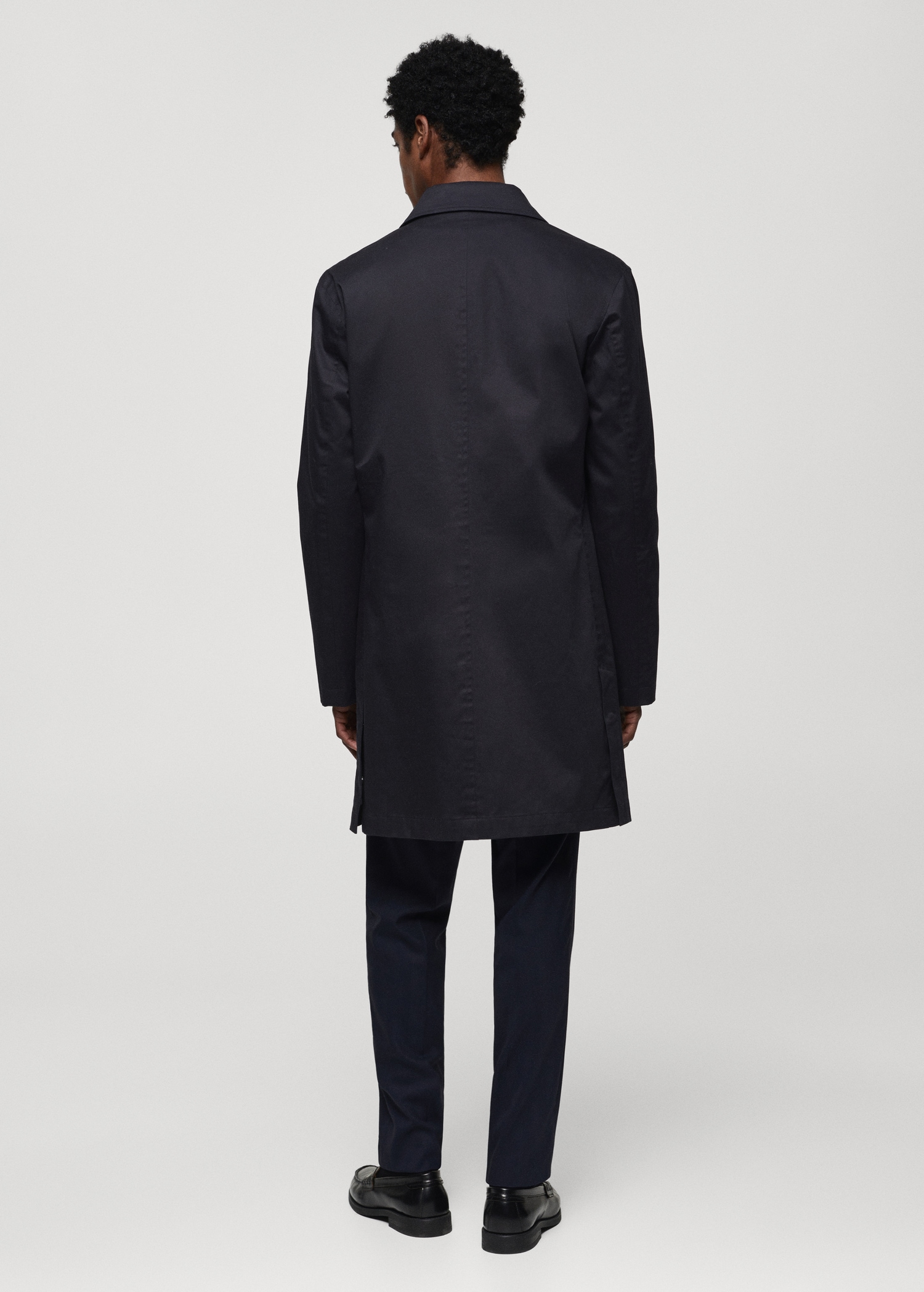 ESSENTIALS: Made to last. Print detail on the inside of the neck. Two side welt pockets. Inner lining. Interior pocket. Back Slit at the Hem. Long design. Front button closure. Classic collar. 100% cotton fabric. ESSENTIALS: Made to last. We have strengthened our quality requirements by adding new resistance tests to our garments. Designed paying careful attention to their manufacture, they are now even more durable, versatile and timeless.