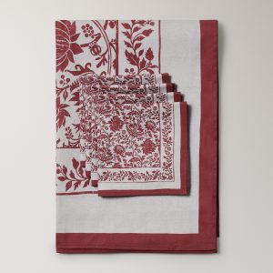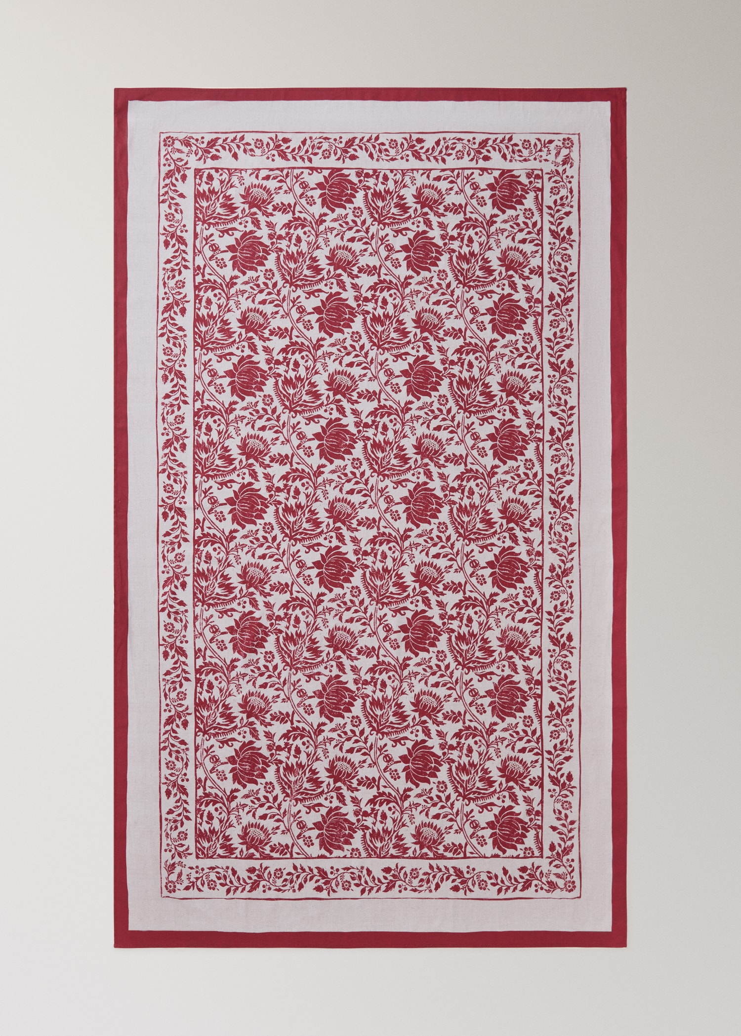 100% Cotton. Size: 150x250cm. This tablecloth, crafted in Spain from 100% cotton, features a floral print. Perfect for adding an elegant and decorative touch to special occasions. Pair it with more products from the collection