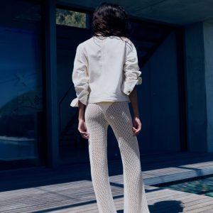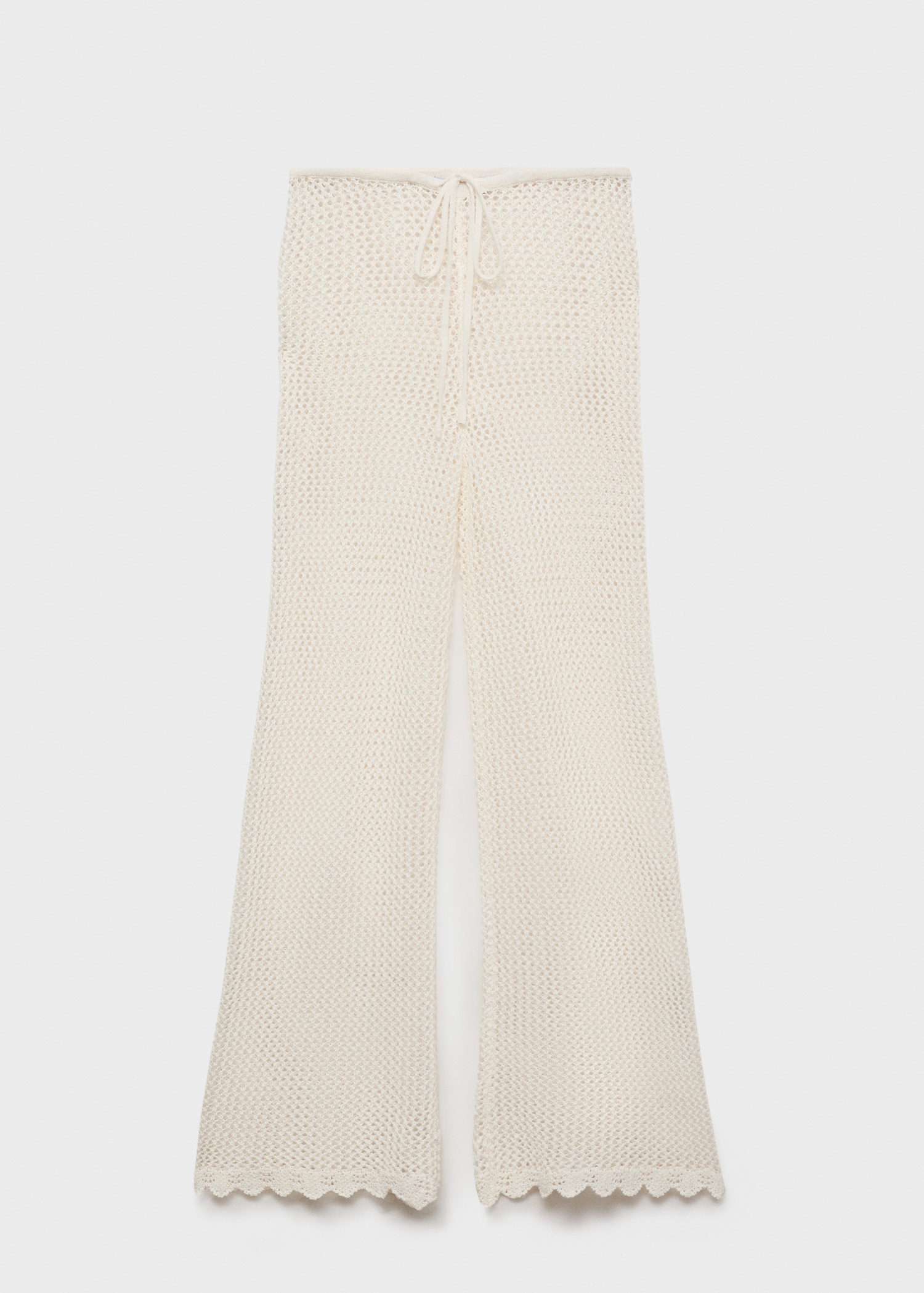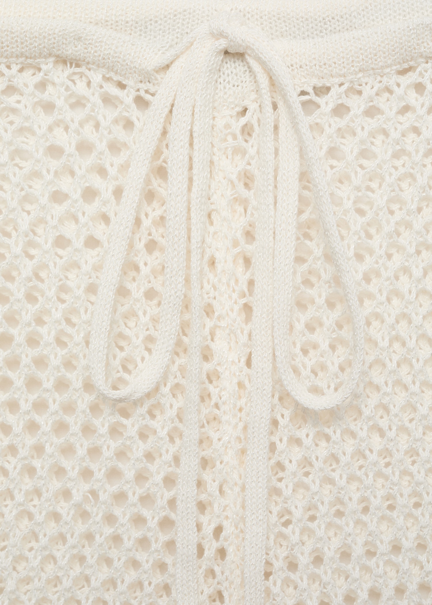 Chunky Knit Fabric. Crochet fabric. Long design. Flare design. High-rise. Adjustable drawstring waist. Total look