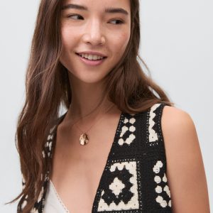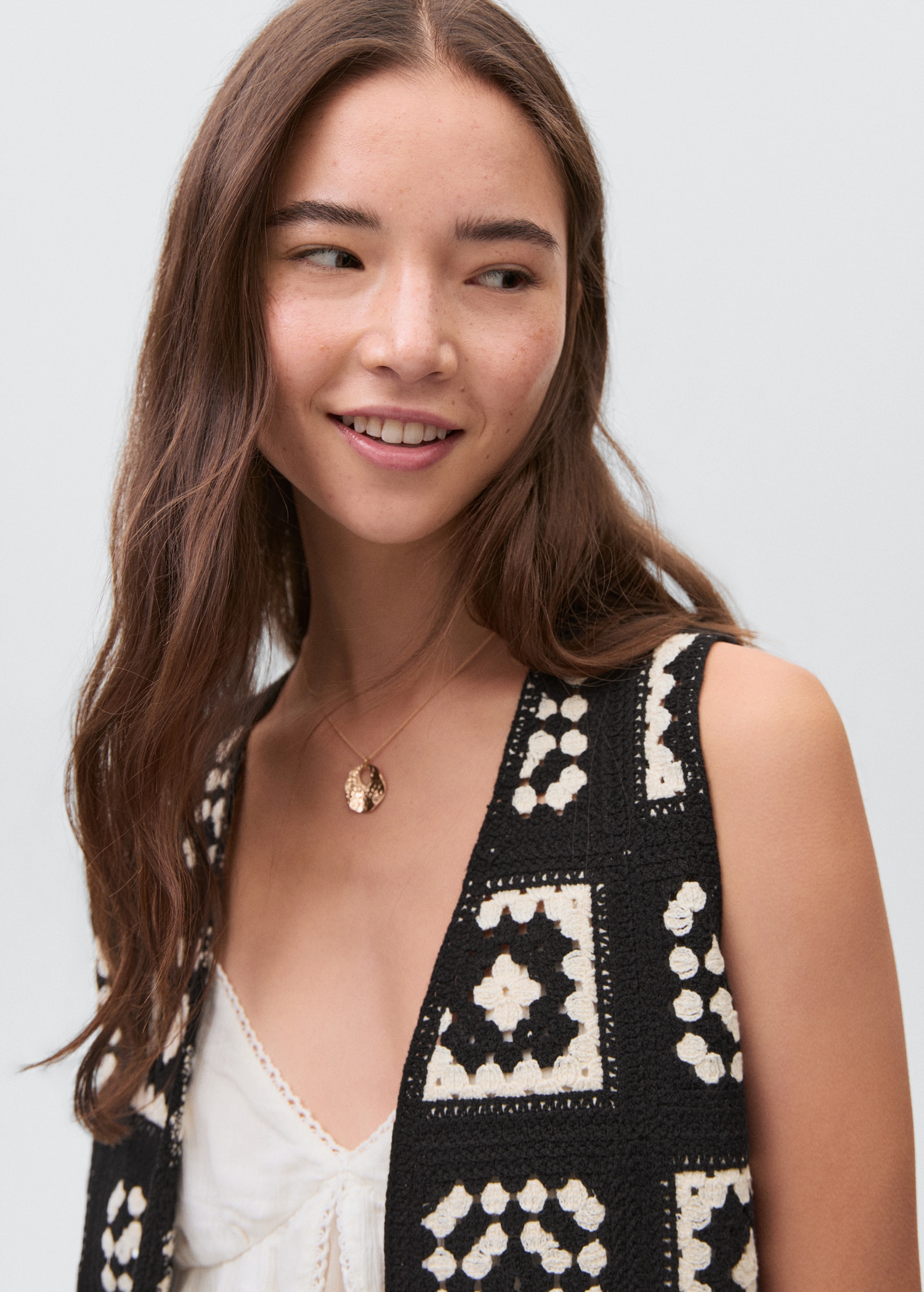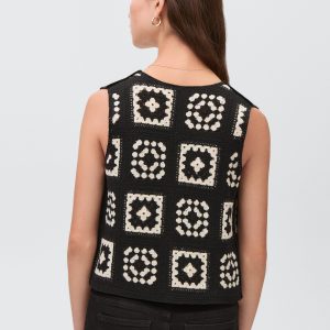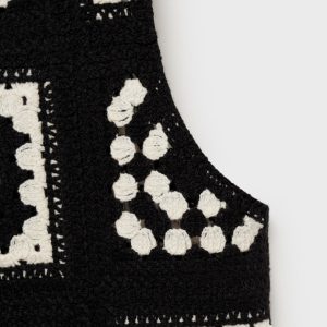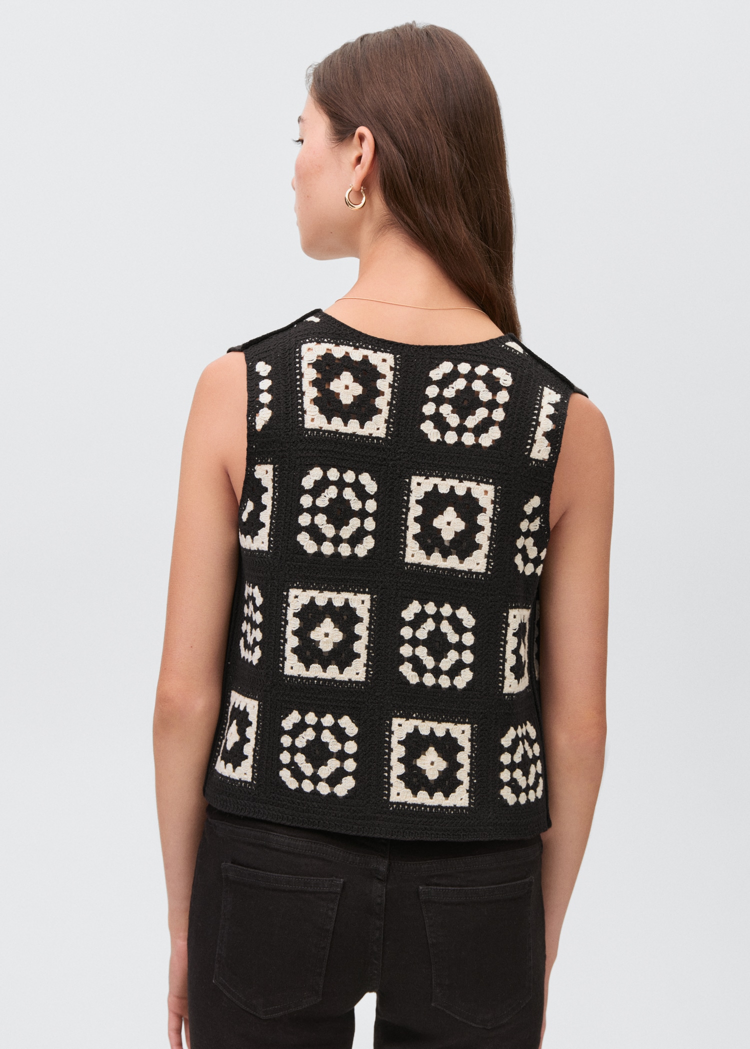 Cotton fabric. Knitted fabric. Crochet design. Short design. Sleeveless. No closure. Promotional product