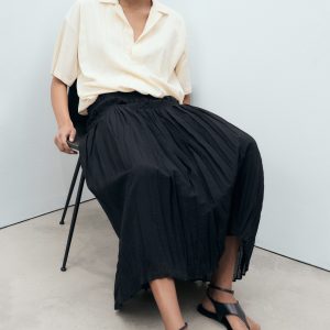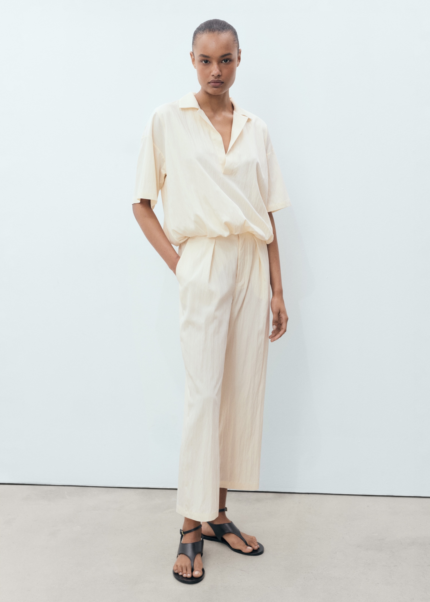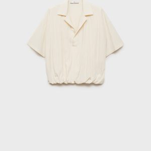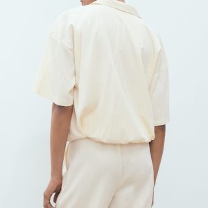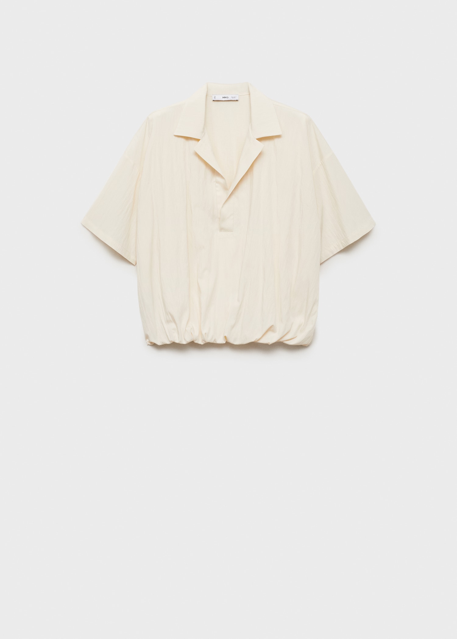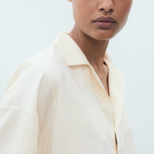 Straight Design. Shirt collar. Short sleeve. Bubble hem. No closure. 100% cotton lining. Total look