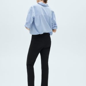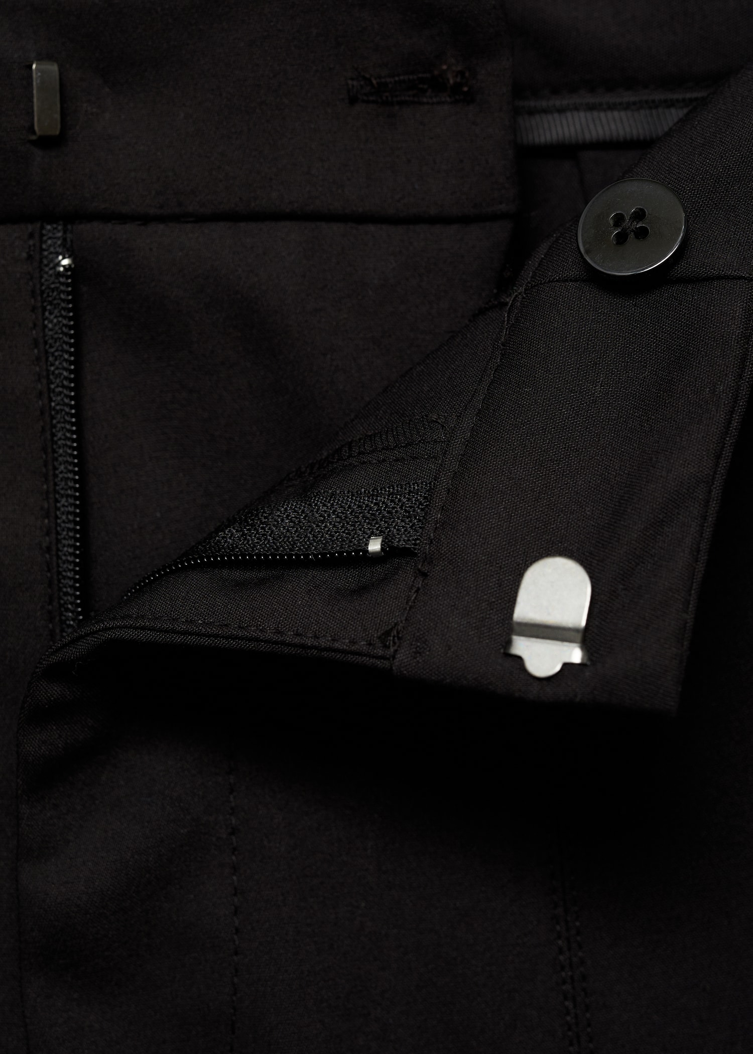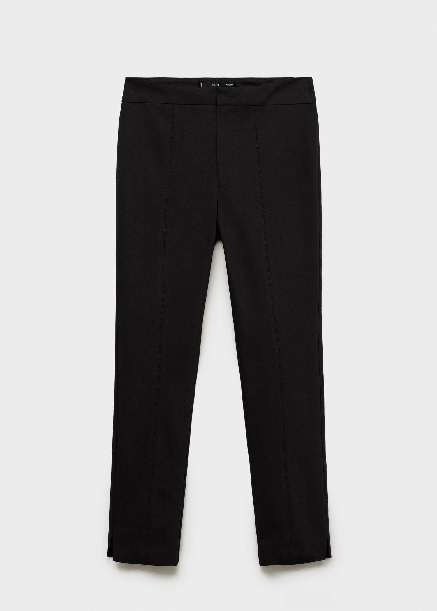 Cotton blend fabric. Fitted design. Crop design. High-rise. Two welt pockets at the back. Office looks. Concealed button, hook and zip fastening. Inner lining. Low waist. Skinny fit. Straight Design. Standard design. Mid-rise. Side slit hem. Zipper, button and concealed hook-and-loop fastener with placket. Medium size