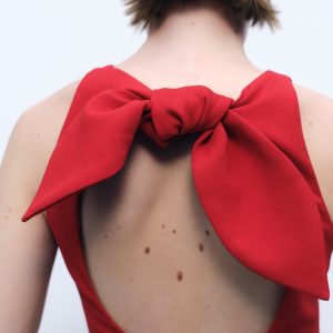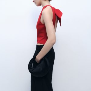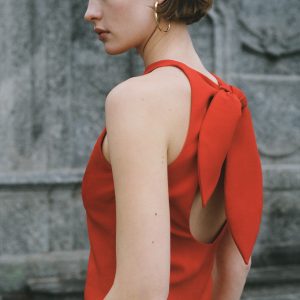 Crop design. Crew neck. Sleeveless. Tie closure at the back. Total look. Open back. Inner lining. This garment is part of our event collection, designed to make you the perfect guest at any party, wedding, or ceremony.