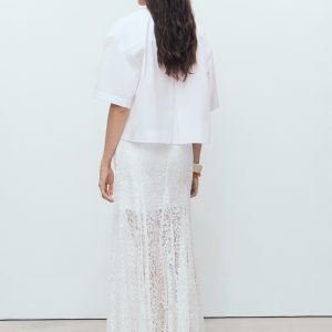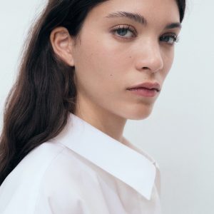 100% cotton fabric. Straight Design. Crop design. Shirt collar. Short sleeve. Concealed front button fastening