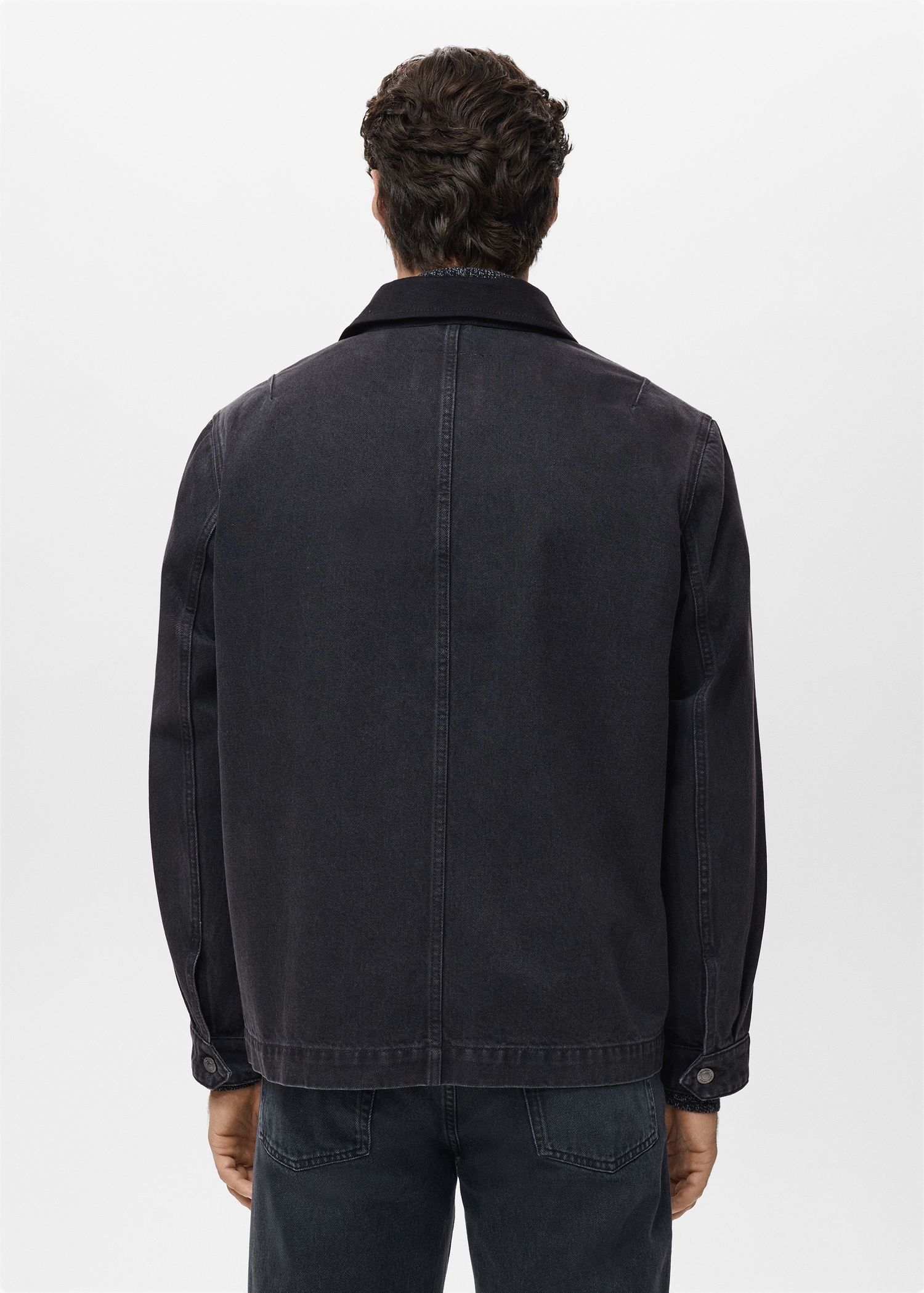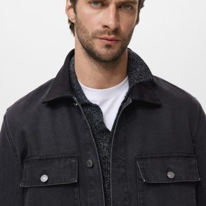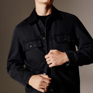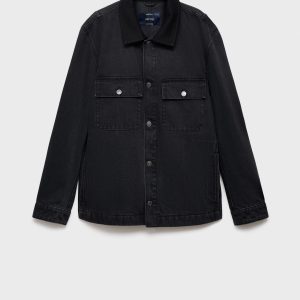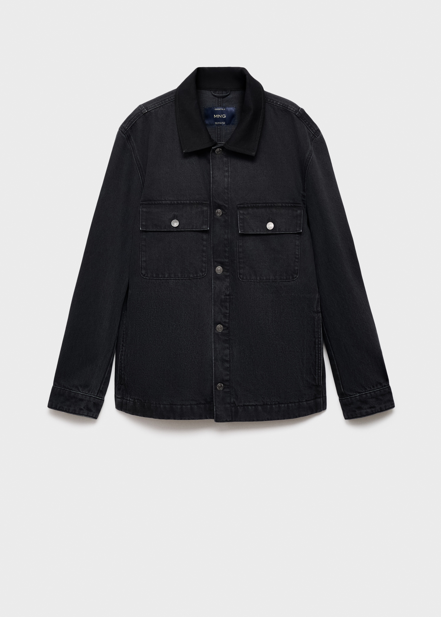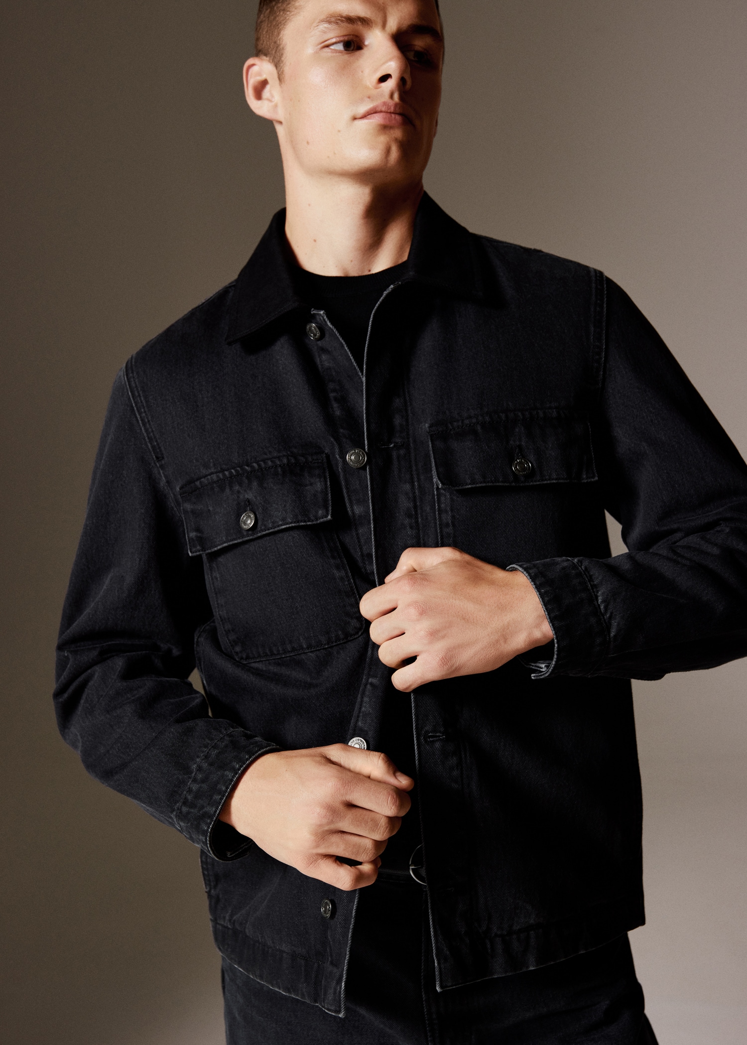 100% cotton fabric. Straight silhouette. Denim-effect. Dark wash. Two flap and buttoned patch pockets on the chest. Interior pocket. Shirt collar. Button closure. Long sleeves with buttoned cuffs. ESSENTIALS: Made to last. We have strengthened our quality standards by adding new endurance tests to our garments. Designed with careful consideration of their construction, they are even more durable, versatile and timeless