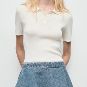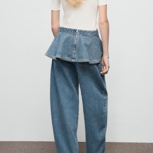 Crafted from denim-style cotton fabric, this skirt features a micro and A-line design. Its low-rise waist is complemented by a zipper fastening at the back