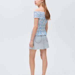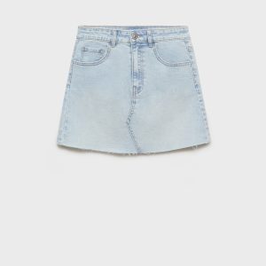 Denim miniskirt with frayed hem