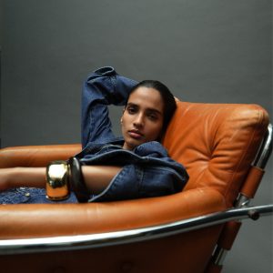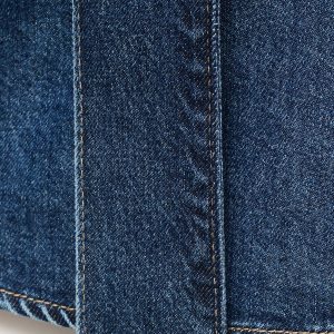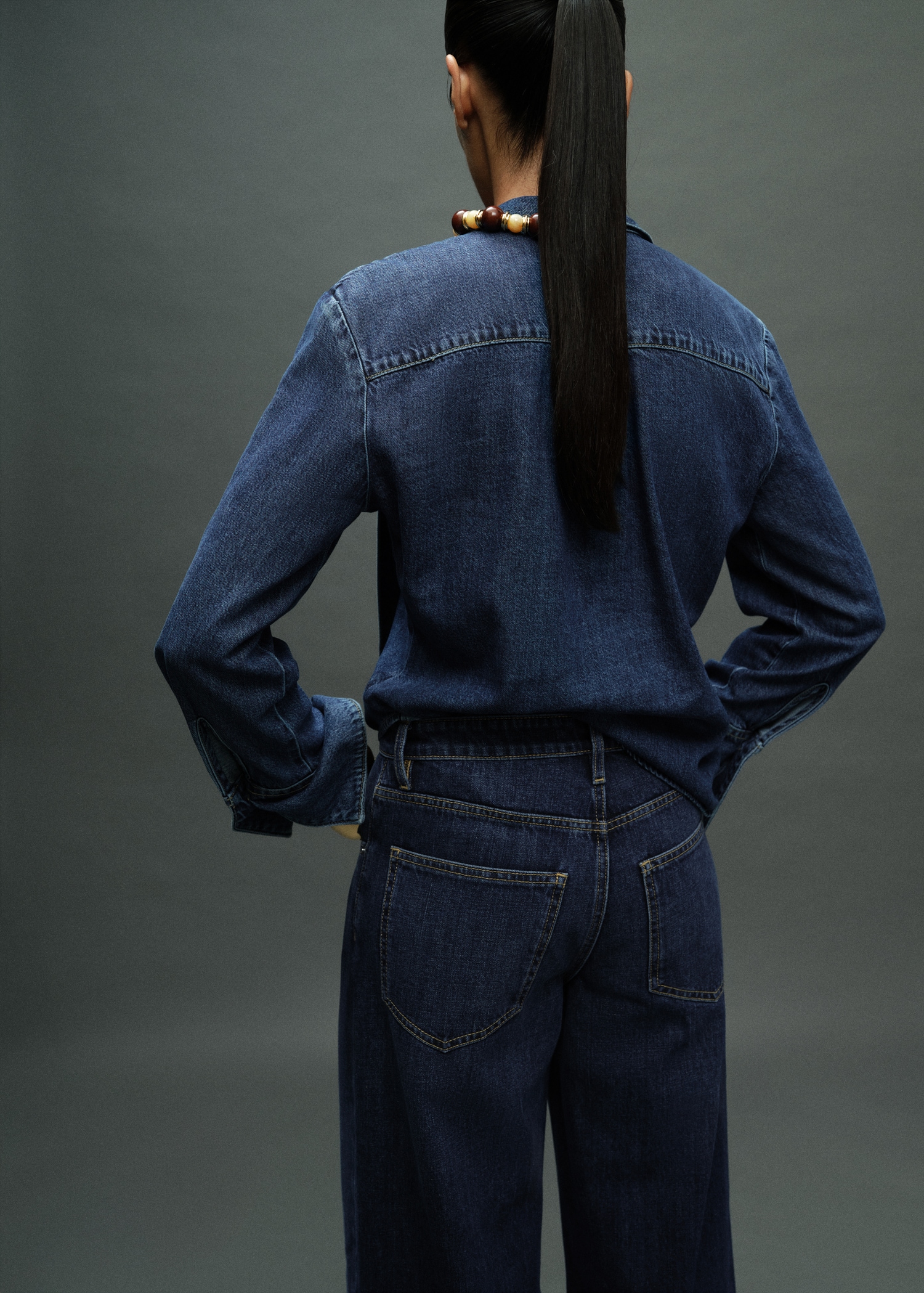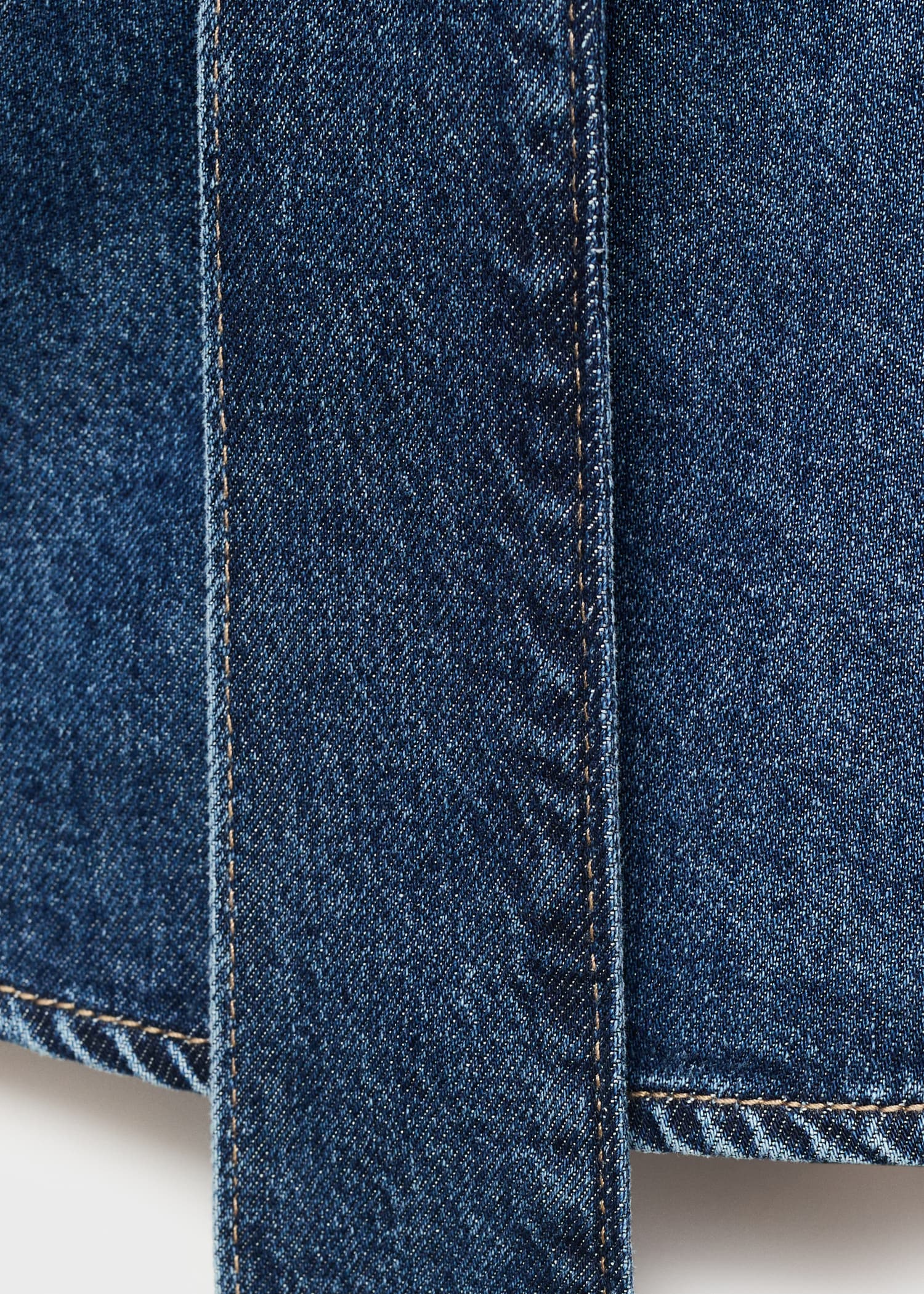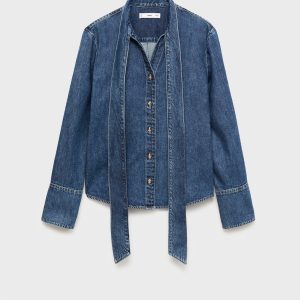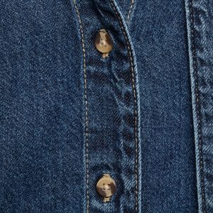 Crafted from denim-style cotton fabric, this garment features a straight design with a shirt collar and tie. It has long sleeves and a front button closure