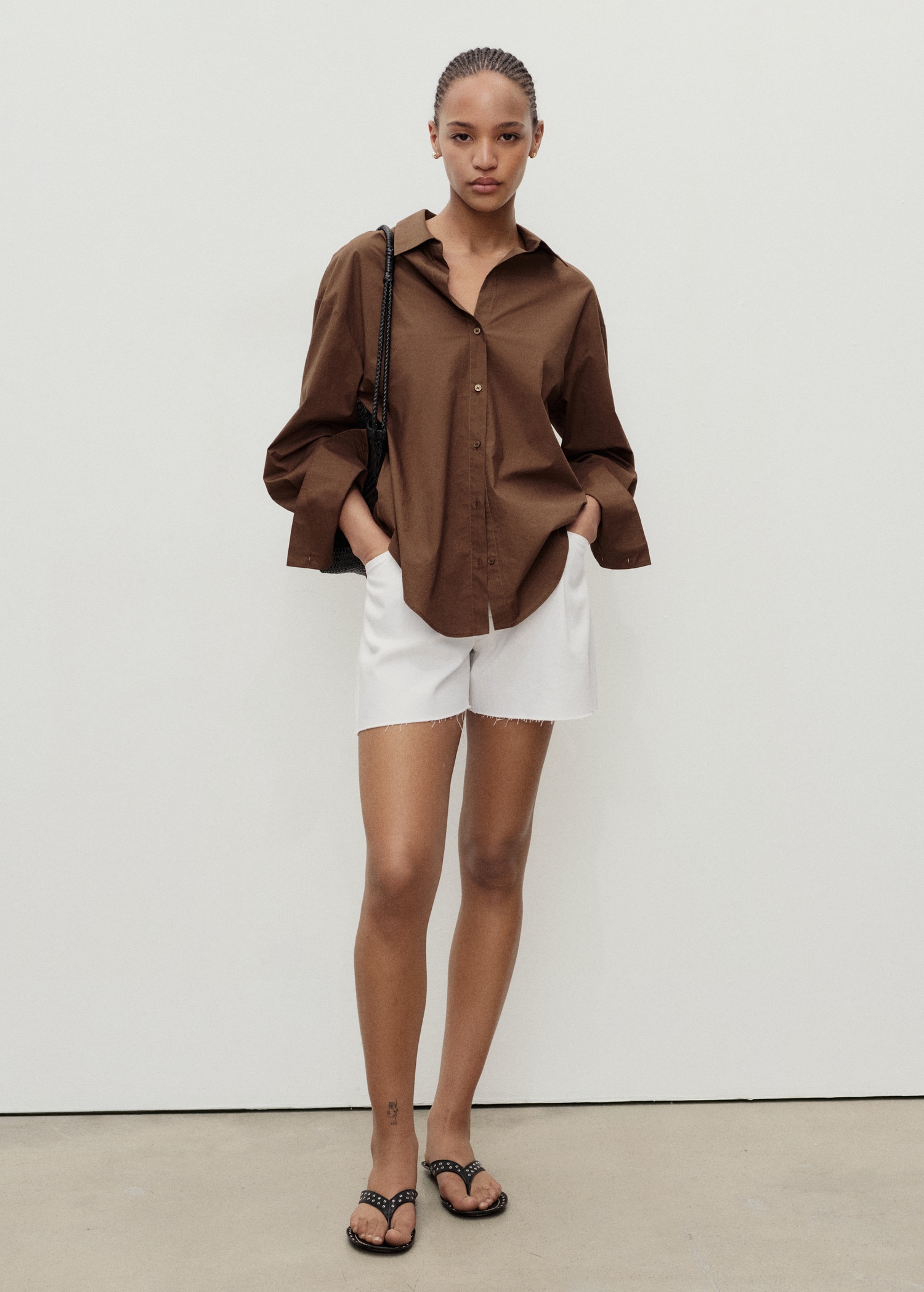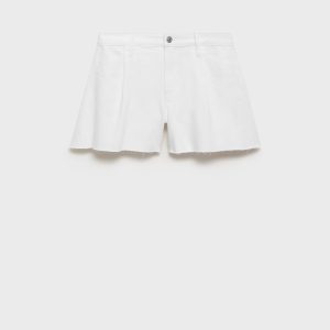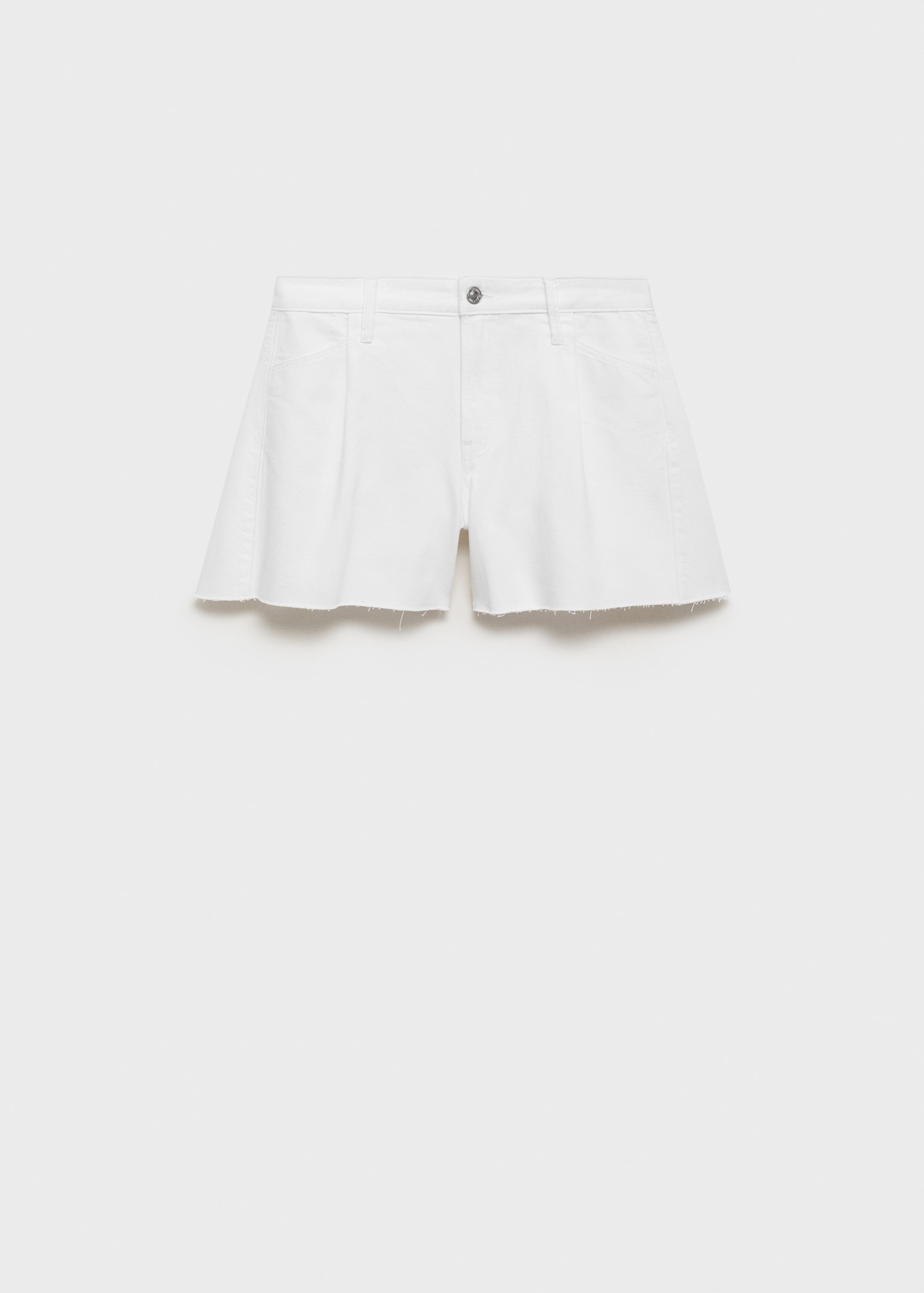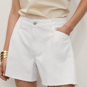 These mid-rise denim shorts, with their relaxed fit and frayed hem, capture the essence of minimalist and modern style. Featuring front pleats, they are perfect for a casual look. They are the ideal choice for those seeking comfort and effortless sophistication.