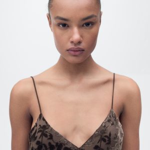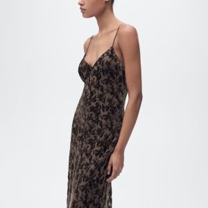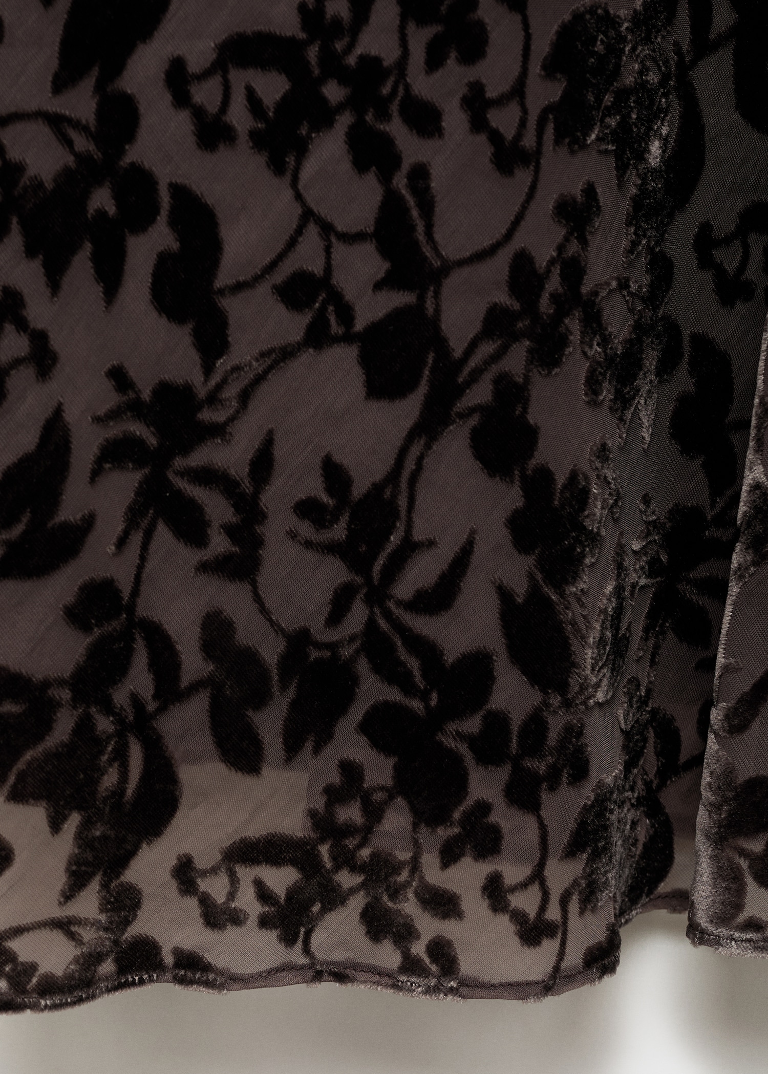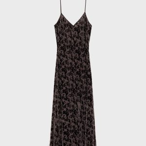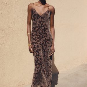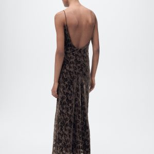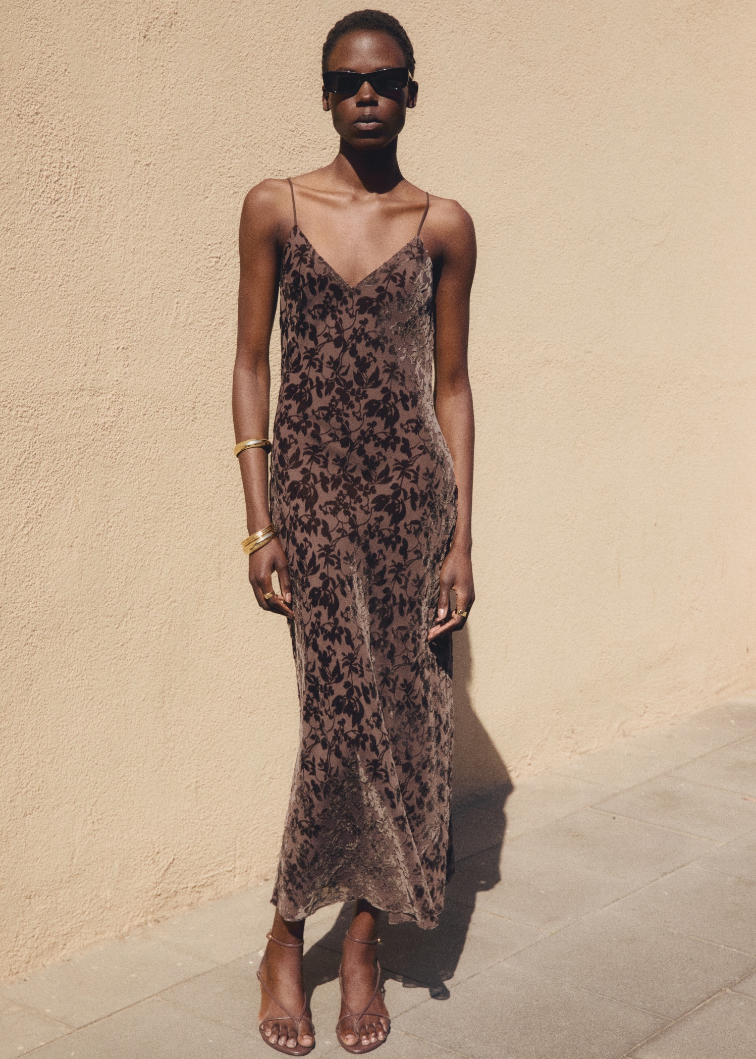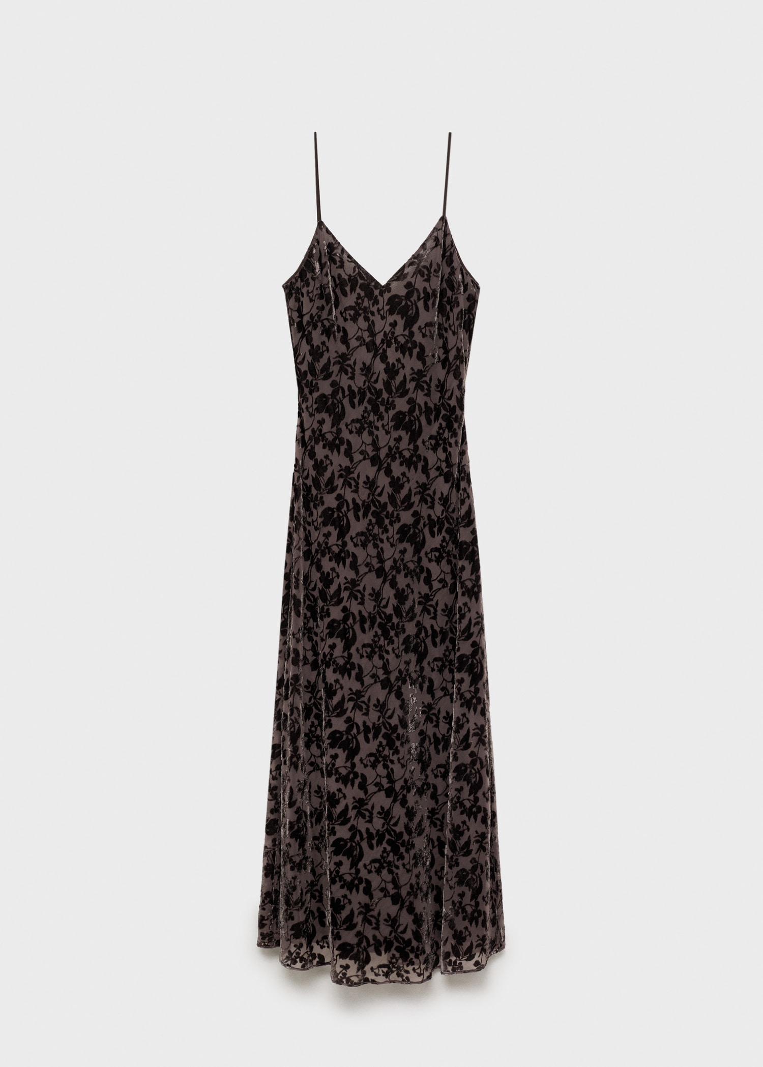 Devore fabric. Fitted design. Long design. Floral print. V-neck. Thin straps. Backless. No closure. This garment is part of our event collection, designed to make you the perfect guest at any party, wedding, or ceremony.. White color is exclusive online