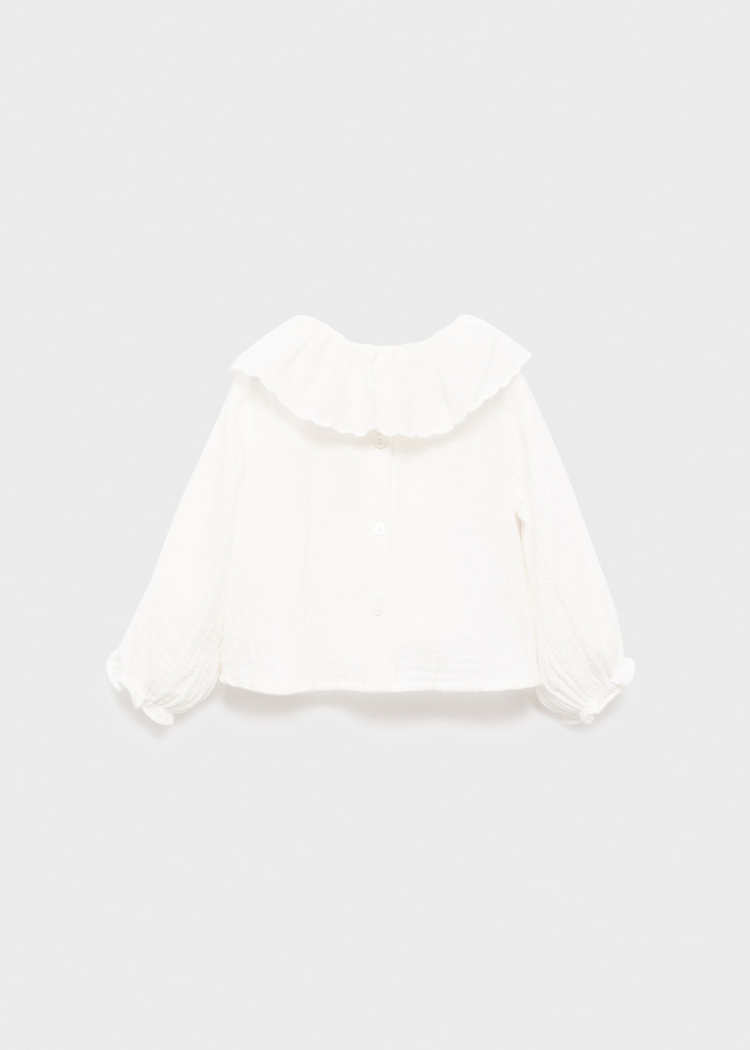100% cotton fabric. Bambula fabric. Babydoll collar. Long sleeves with elastic cuffs