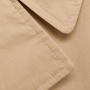 Cotton fabric. Straight Design. Long design. Lapel-collar V-neck collar. Long sleeve with loops. Loops on the waist. Two side pockets. Double button fastening. With inner lining