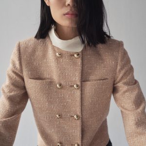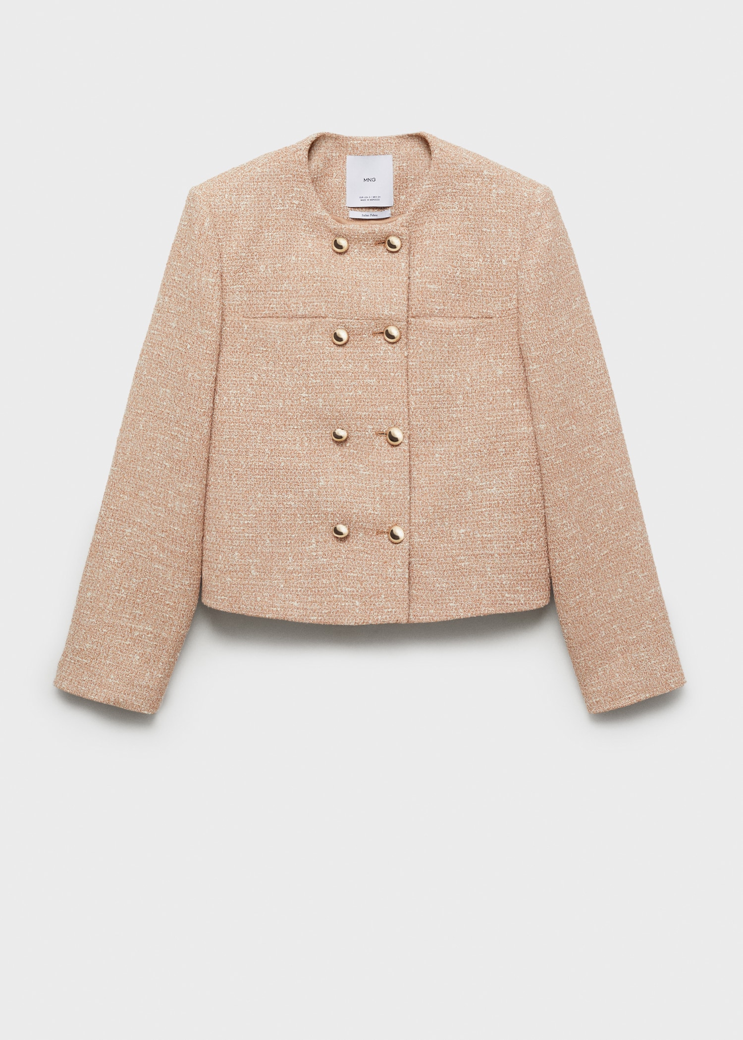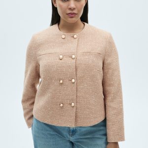 Tweed fabric. Straight design. Round Neck. Long Sleeve. Two patch pockets at chest. Double button fastening. Inner lining. Party and ceremony collection. Available Plus