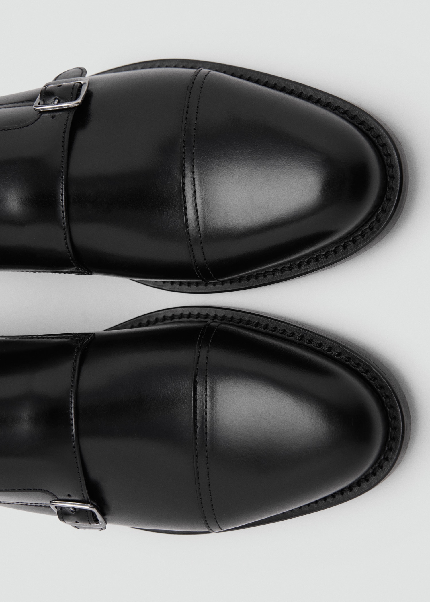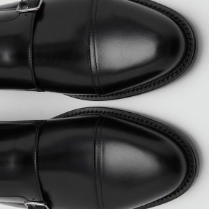 100% nappa leather. Double buckle closure. Backstitched details. Round toe