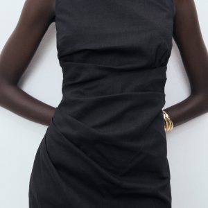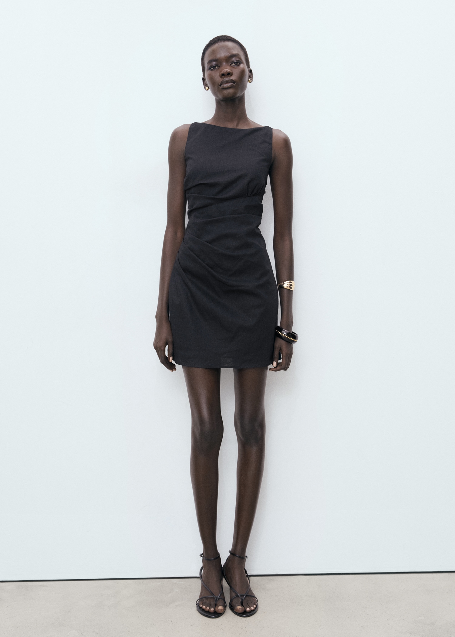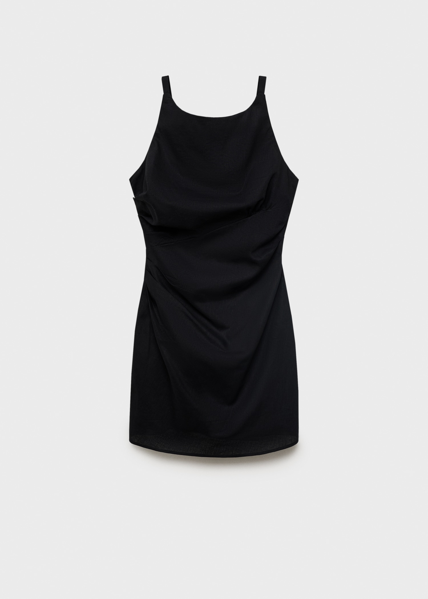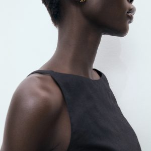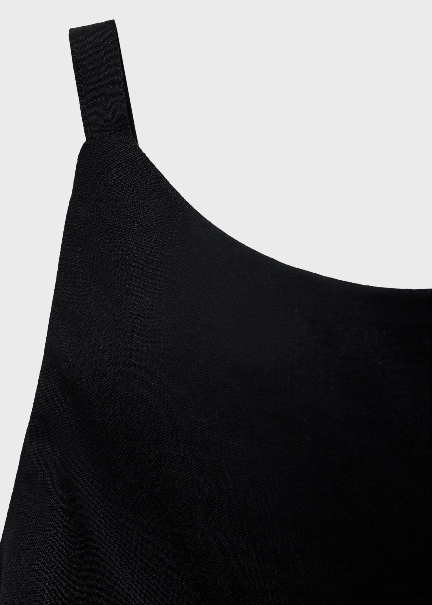 Linen and cotton blend fabric. Short design. Shaved design. Boat neck. Sleeveless. Thin adjustable straps. No closure. Inner lining. The blue color is an online exclusive. This garment is part of our casual collection, designed to stylishly accompany you in your day-to-day life