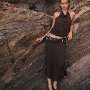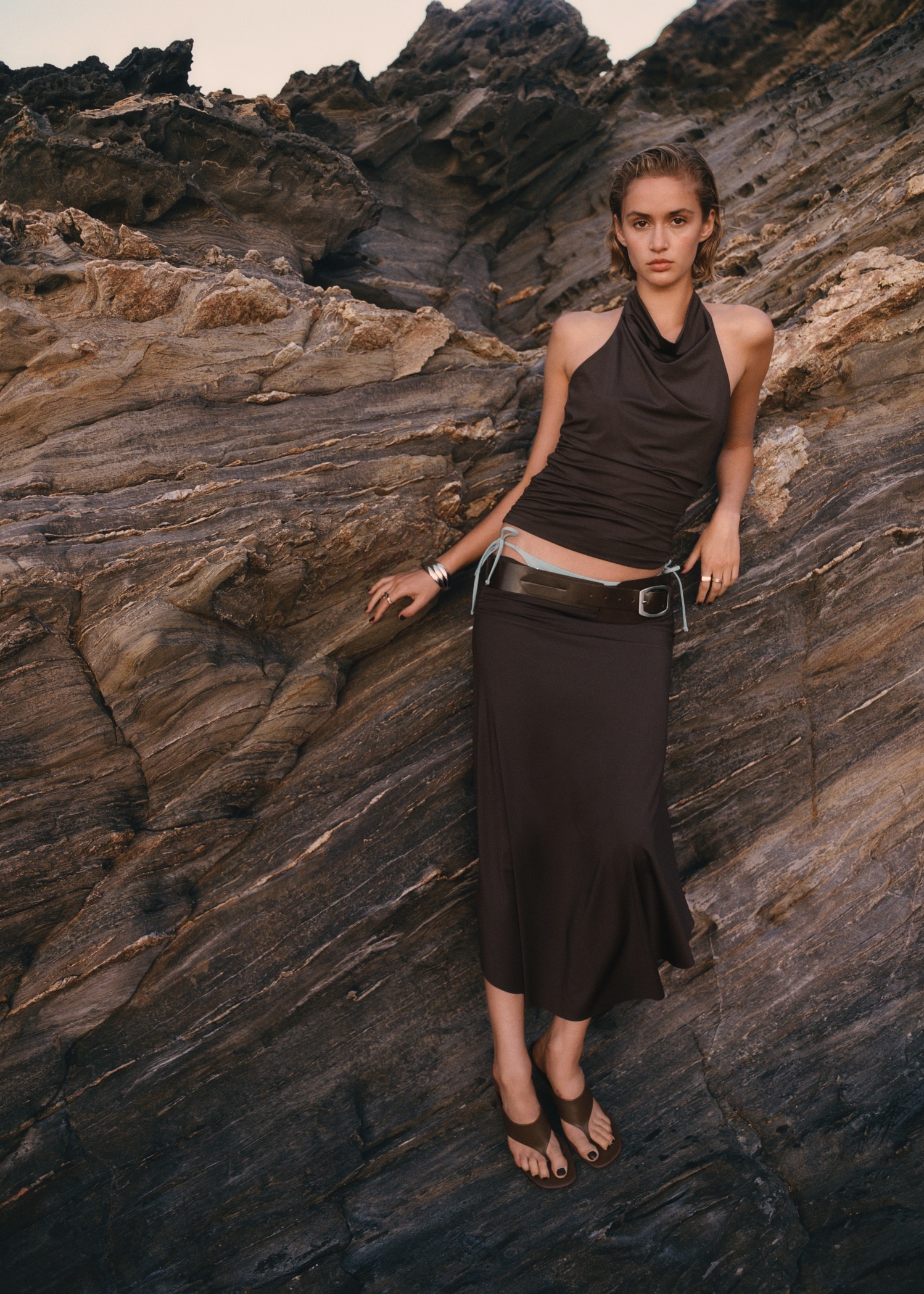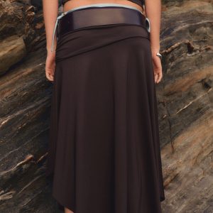 Stretch fabric. Midi design. Combined design. Asymmetric hem. No closure. Total look. Online Exclusive