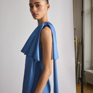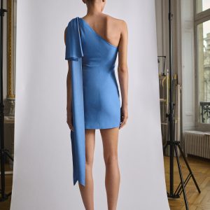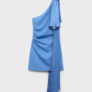 Dazzle in this satin fabric dress that radiates a subtle and sophisticated shine. Its asymmetrical design adds a modern and bold touch, while the detachable neck tie offers versatility to customize your style. This garment is the perfect choice for those looking to stand out with elegance and originality at any special event. Satin weave. Short design. Fitted design. Asymmetric neckline. Maxi bow detail on the strap. Draped waist. Side zip closure. Inner lining. Party and ceremony collection. Items from the CAPSULE collection can be exchanged or returned within 14 days from the date of shipment. This garment is part of our event collection, designed to make you the perfect guest at any party, wedding, or ceremony.. Capsule: a collection of limited-edition garments, made with the best fabrics and the greatest care in patternmaking, to achieve the best finishes. This exclusive collection is designed for the most special events and occasions