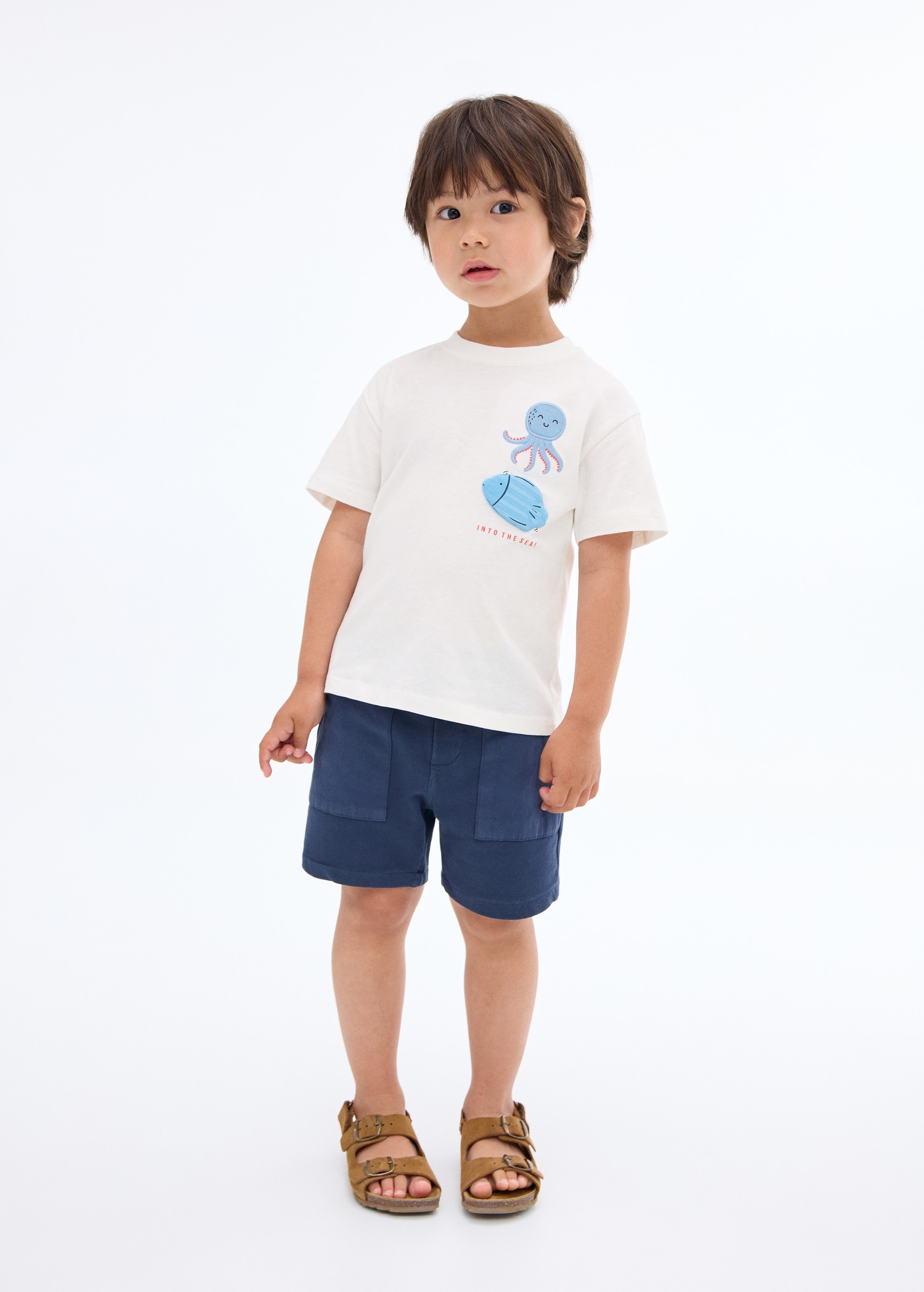 100% cotton fabric. Straight Design. Embroidered design. Embossed design. Crew neck. Short sleeve. Image printed on the front