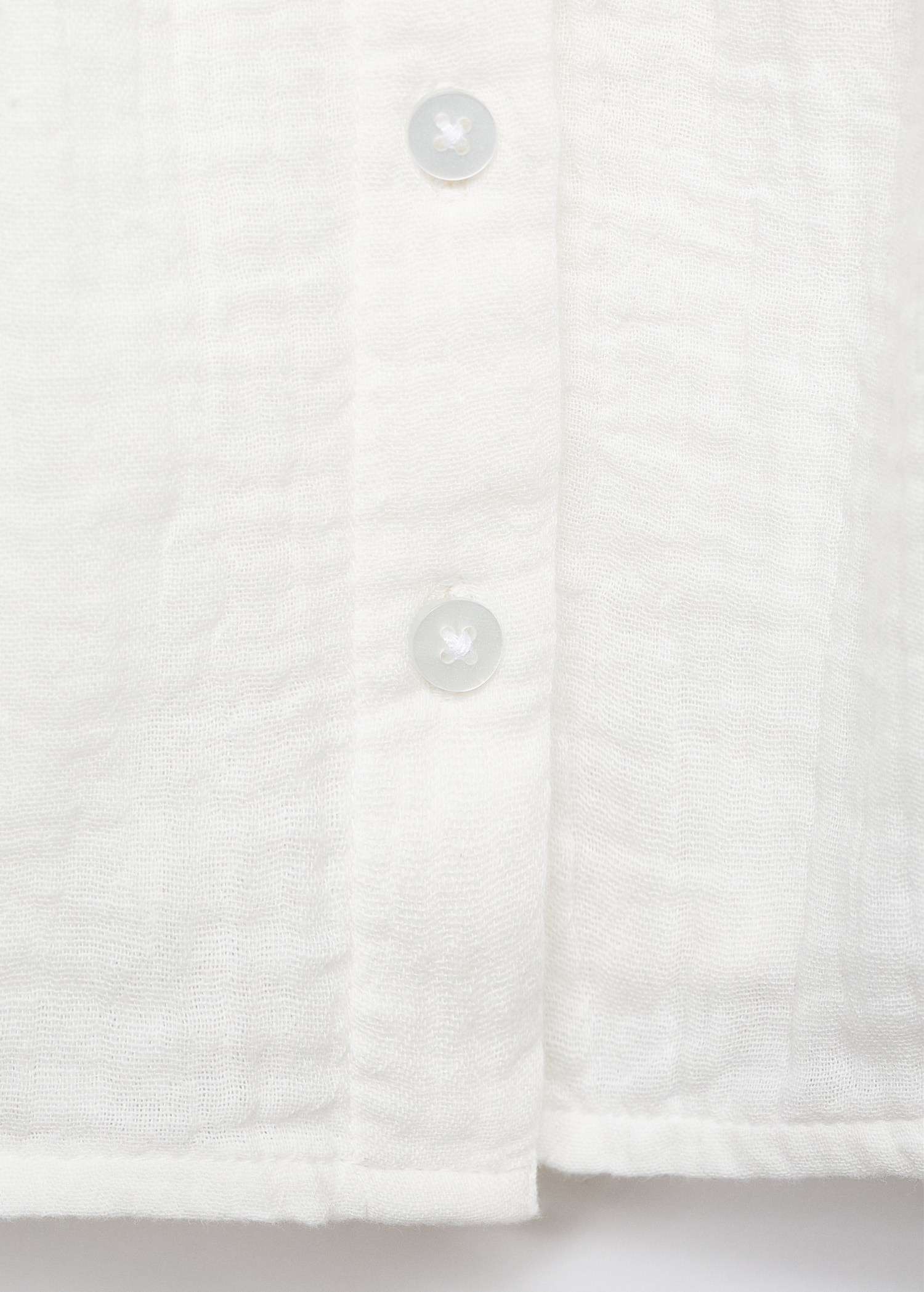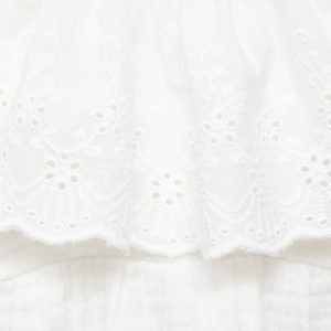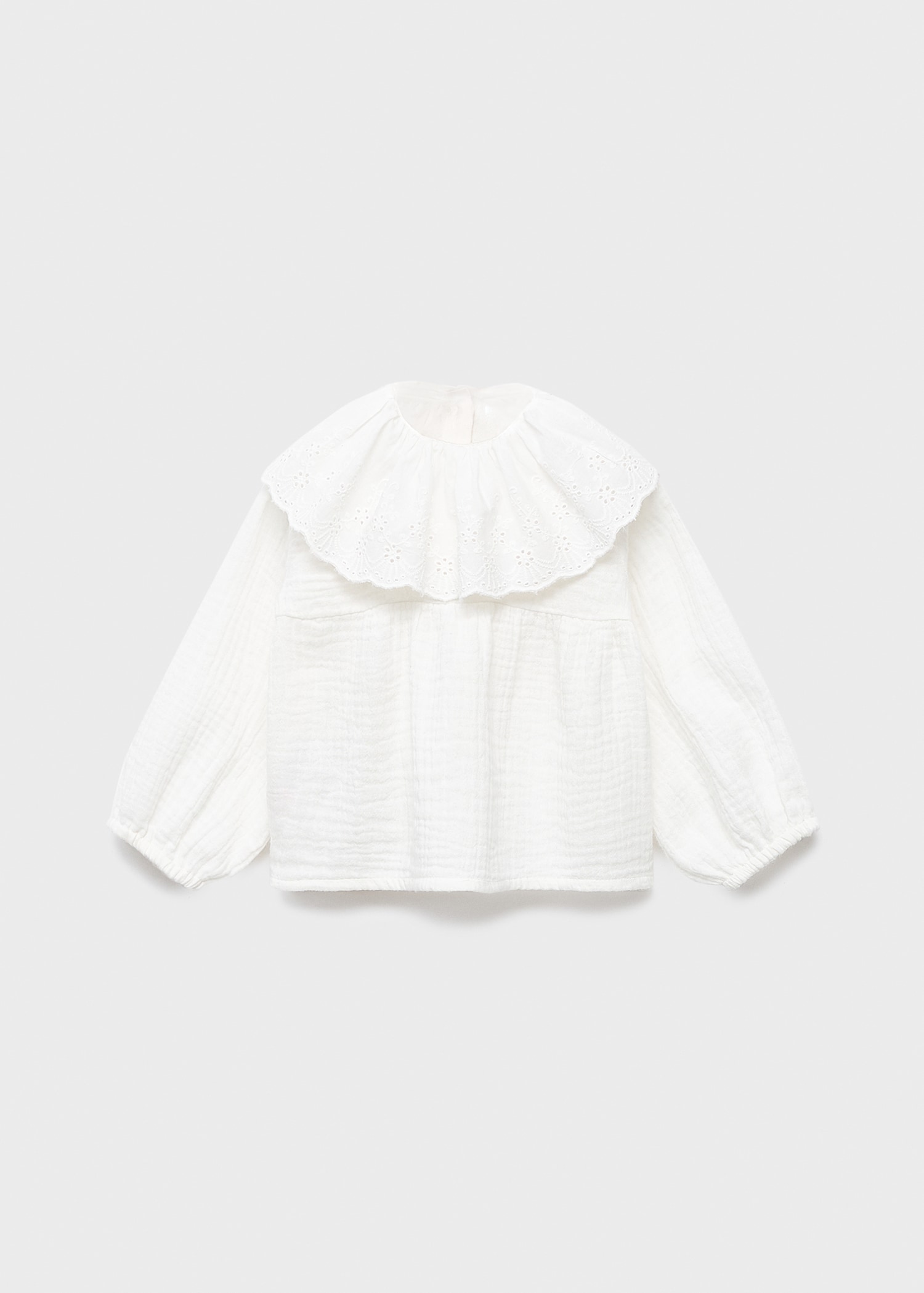 100% cotton fabric. Bambula fabric. Straight Design. Embroidered design. Babydoll collar. Long Sleeve. Gathered details. Front button closure