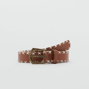 Leather effect. Embroidered details. Buckle closure. Single loop