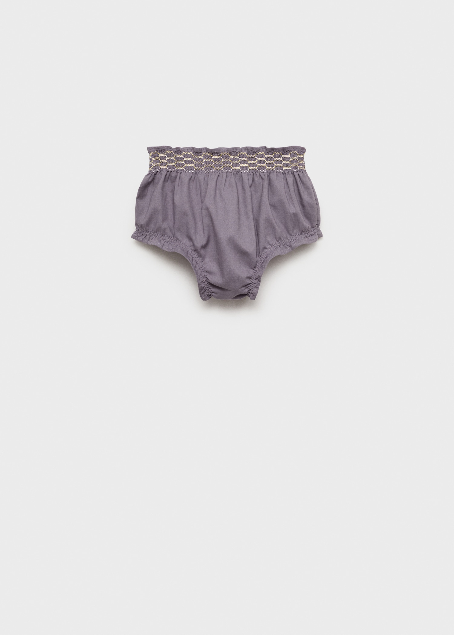 100% cotton fabric. Straight Design. Short design. Ruched waist panel. Embroidered thread detail. Elastic waist. With inner lining. Set