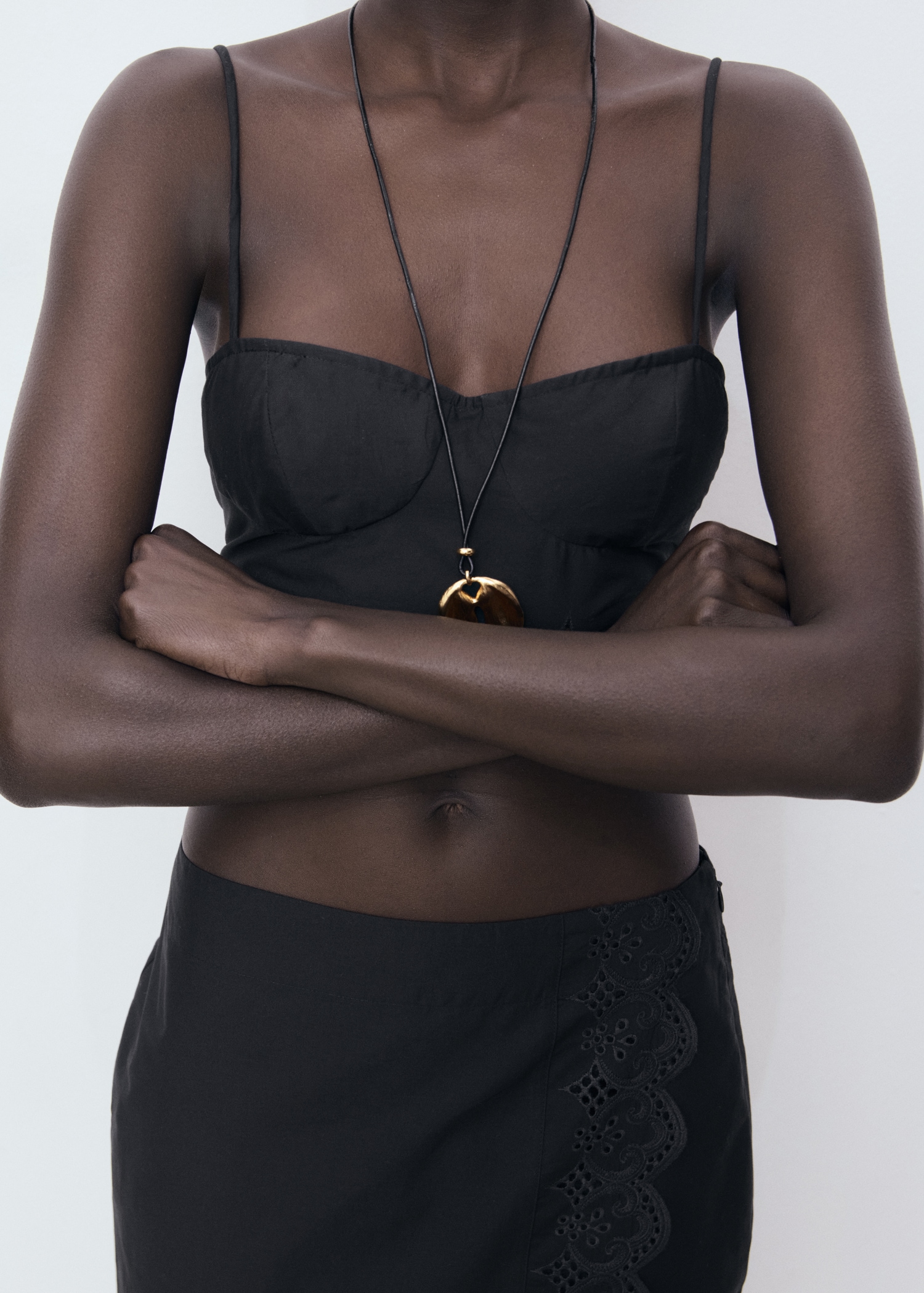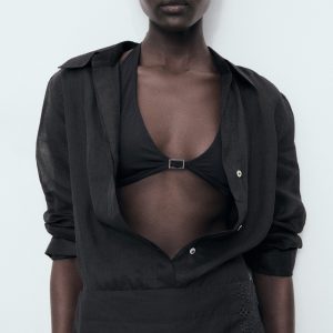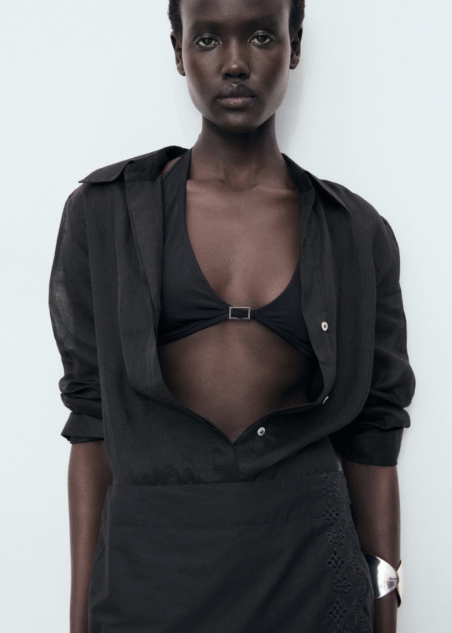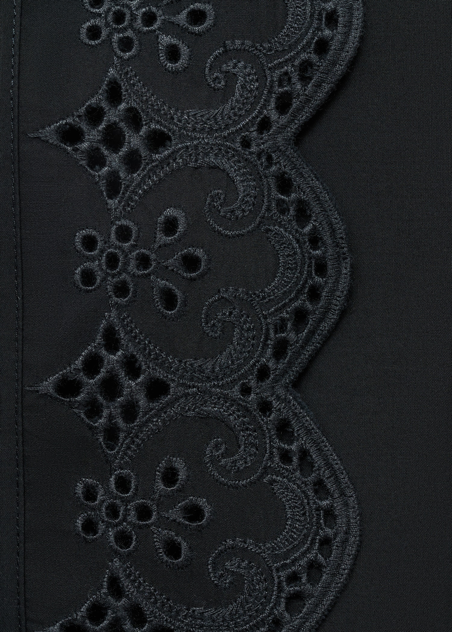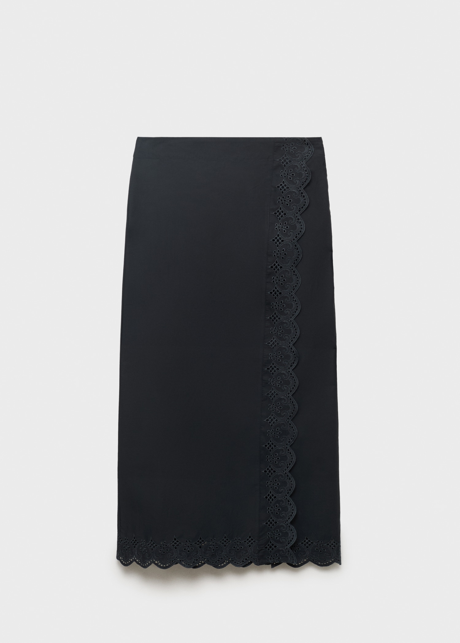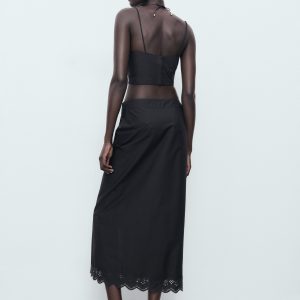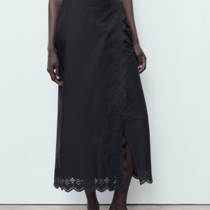100% cotton fabric. Midi design. Straight Design. Embroidered details. Side zip closure. Total look