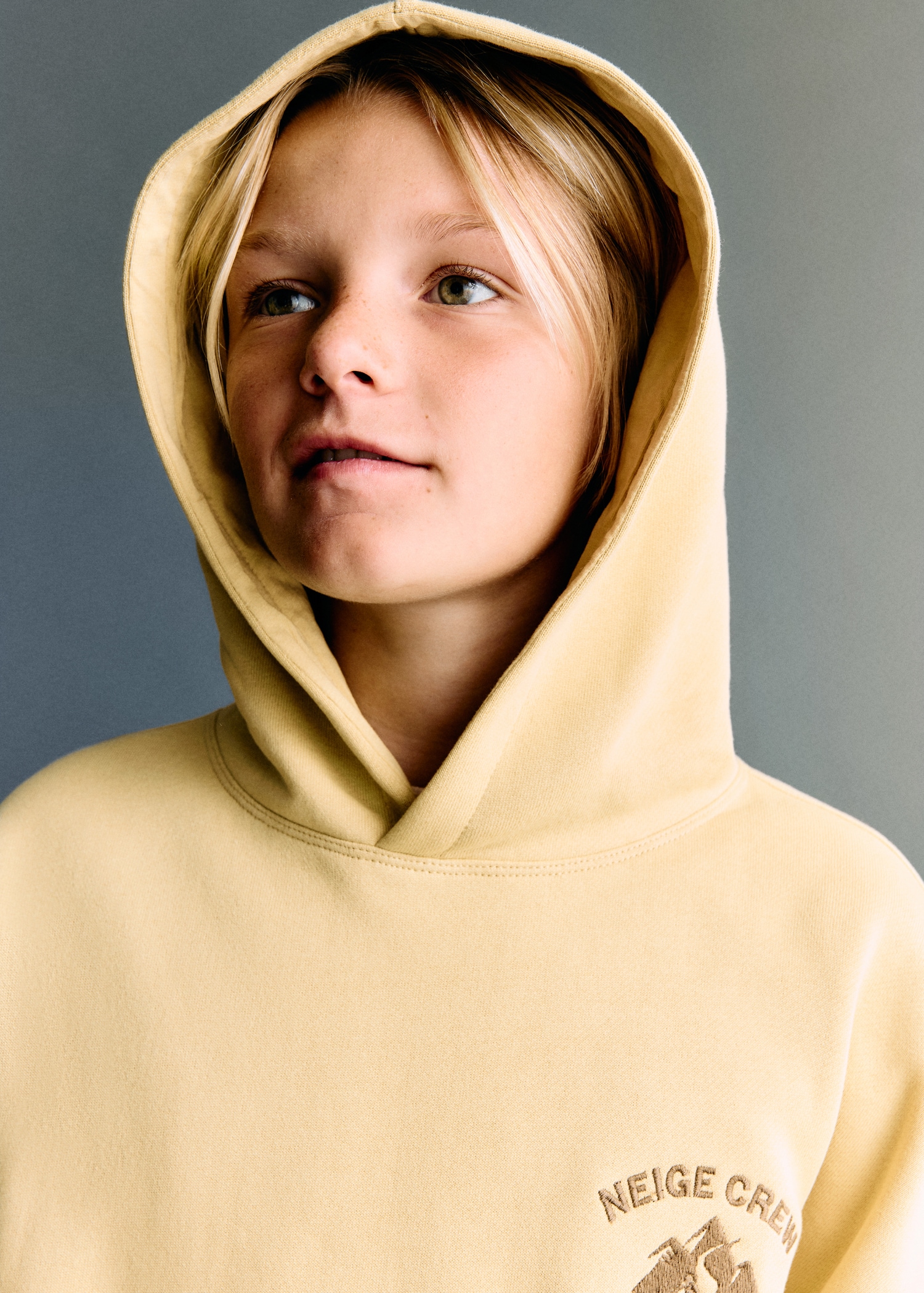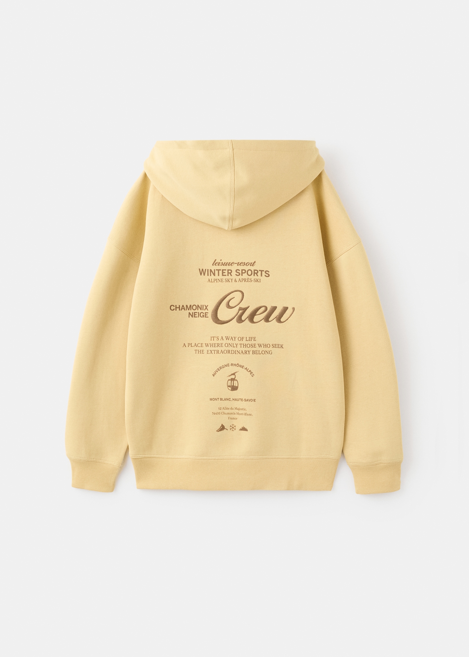 Crafted from cotton fabric, this garment features an oversized design with a hood and long sleeves. The embroidered design stands out on the front and back, giving it a distinctive air