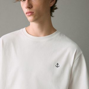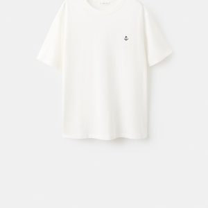 Crafted from 100% cotton fabric, this garment features a straight design with anchor embroidery. The round neck and short sleeves complete its casual and versatile style.