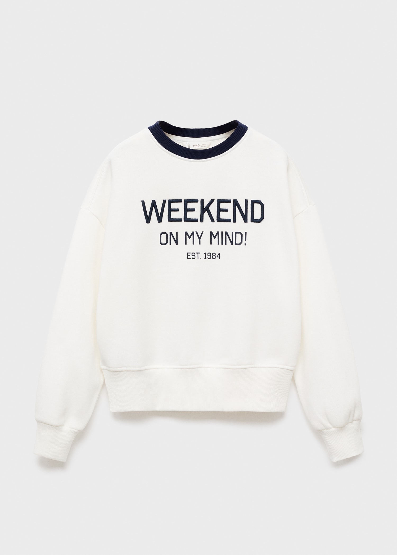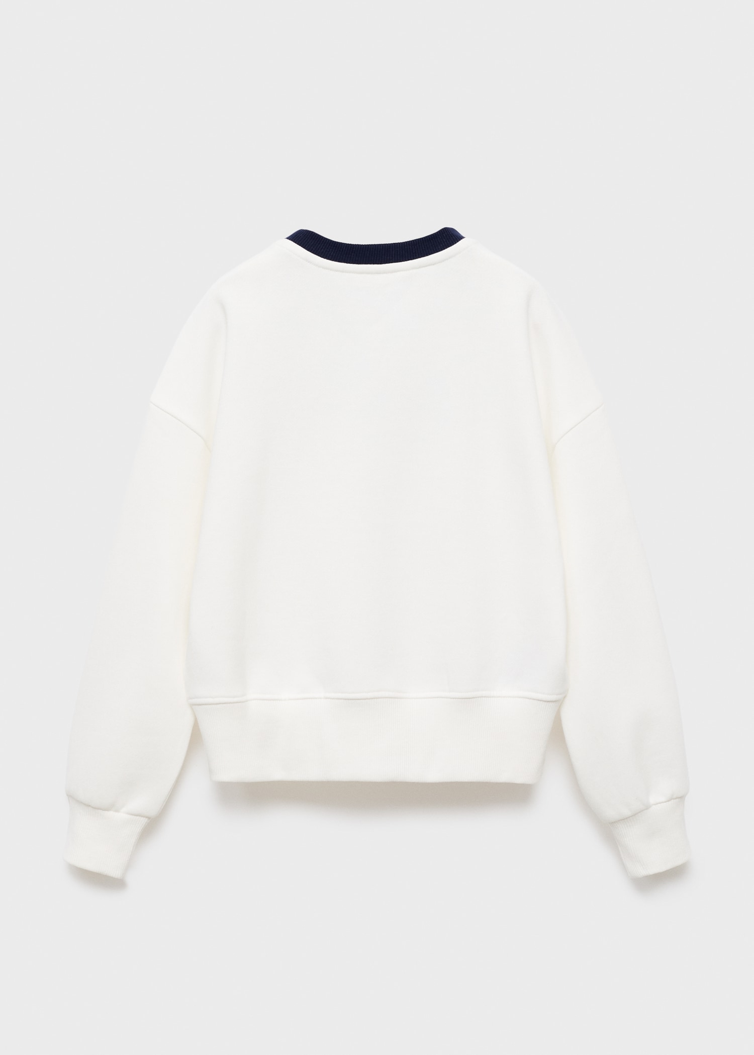 100% cotton fabric. Embroidered design. Straight Design. Embroidered message the front section. Crew neck. Contrast collar. Long Sleeve. Back to school