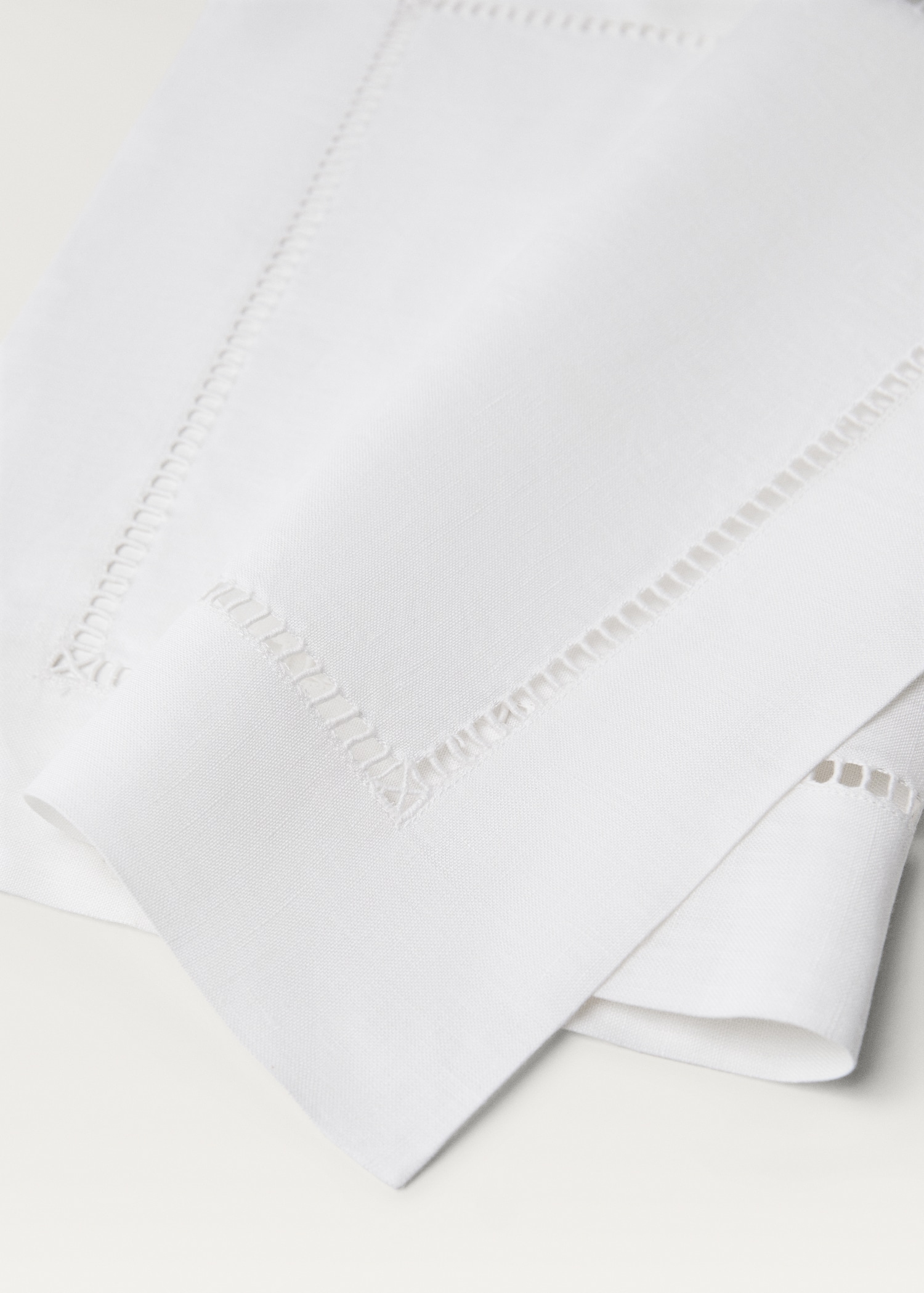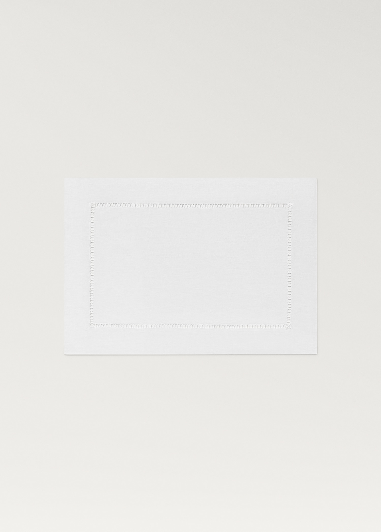 100% Linen. Size: 30x50cm. Combine with the matching table runner. Available in two sizes. Perfect for adding a touch of luxury and sophistication to any table. Handmade. Hemstitch embroidery. Adds a special and inviting touch to the table