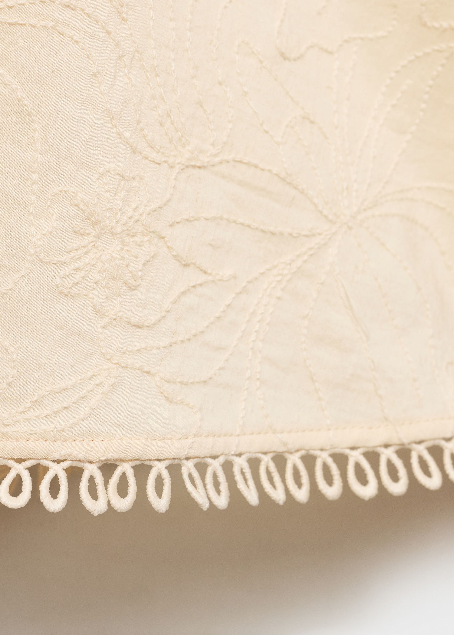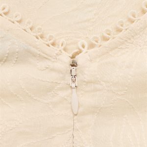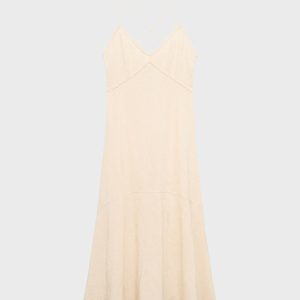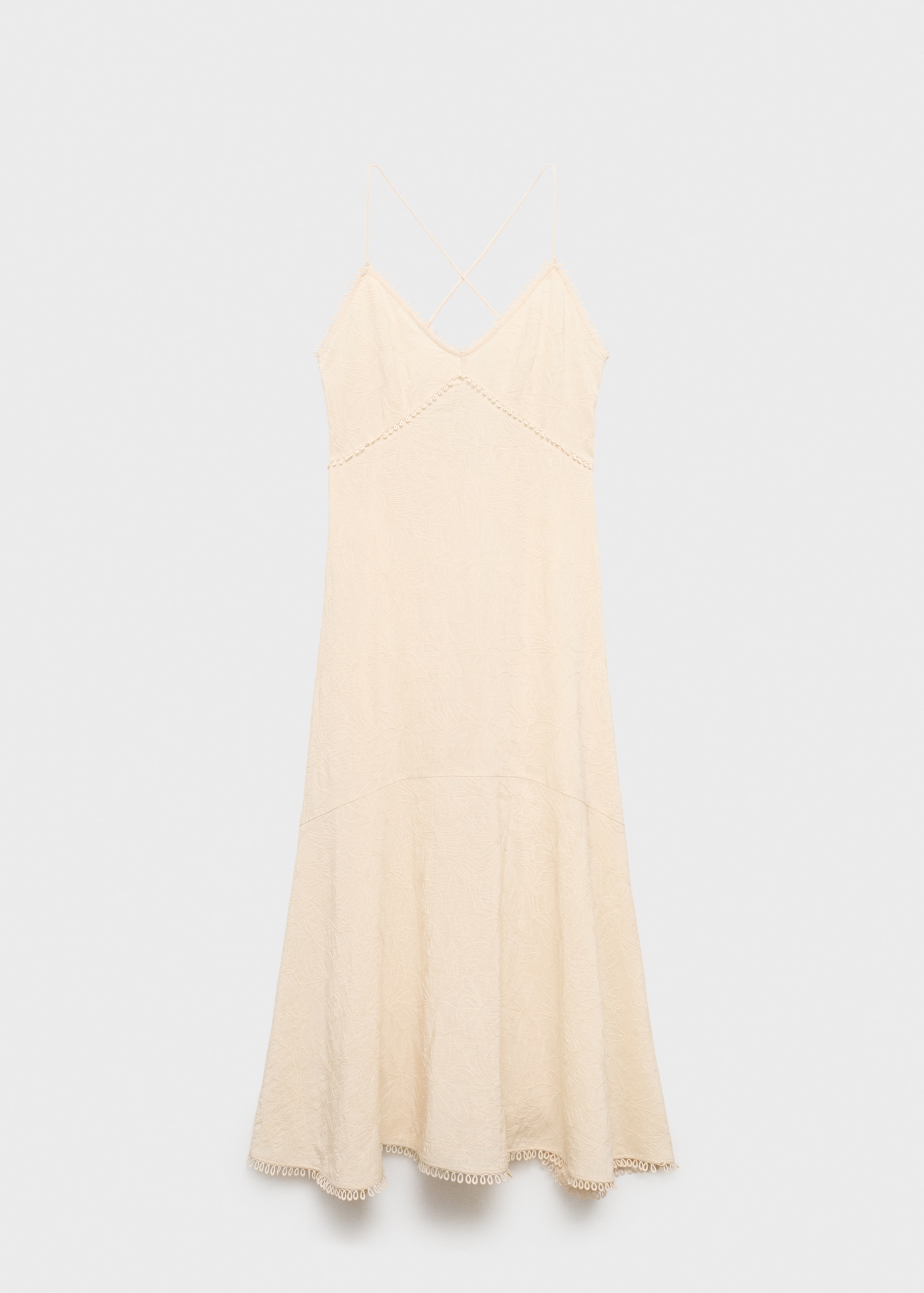 Midi design. V-neckline. Sleeveless. Thin straps. Floral embroidery. Lace details. Back zipper closure. Online Exclusive
