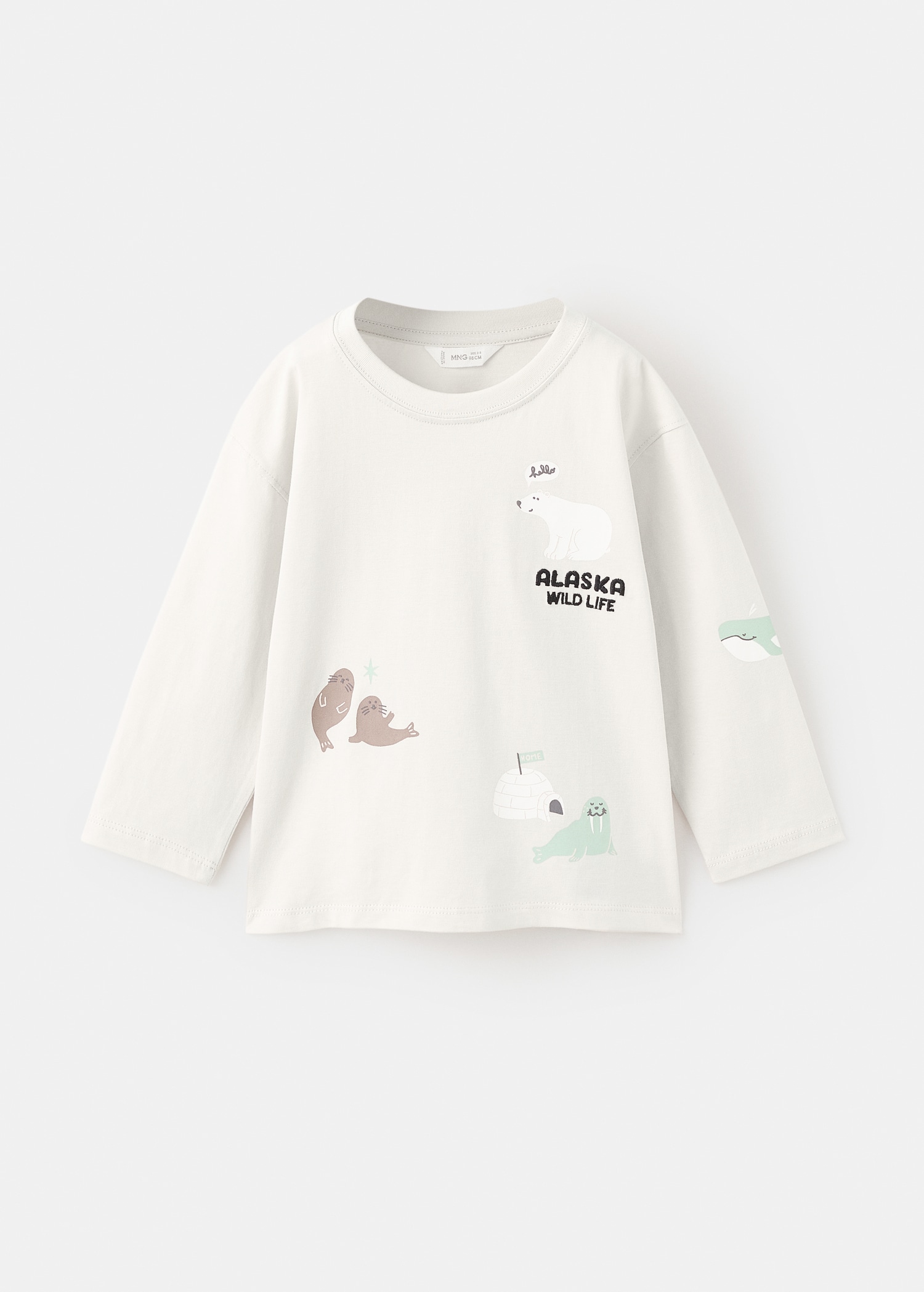 100% cotton fabric. Straight design. Printed design. Embroidered design. Front print design. Animal print. Round Neck. Long Sleeve
