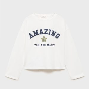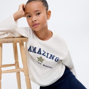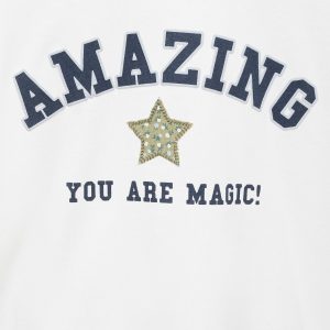 100% cotton fabric. Printed design. Embroidered design. Straight Design. Crew neck. Long Sleeve. Embossed print. Star embroidery. Back to school