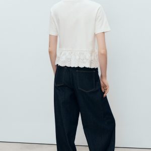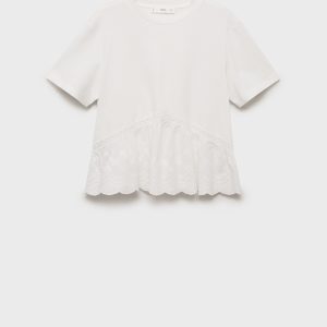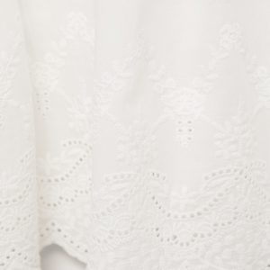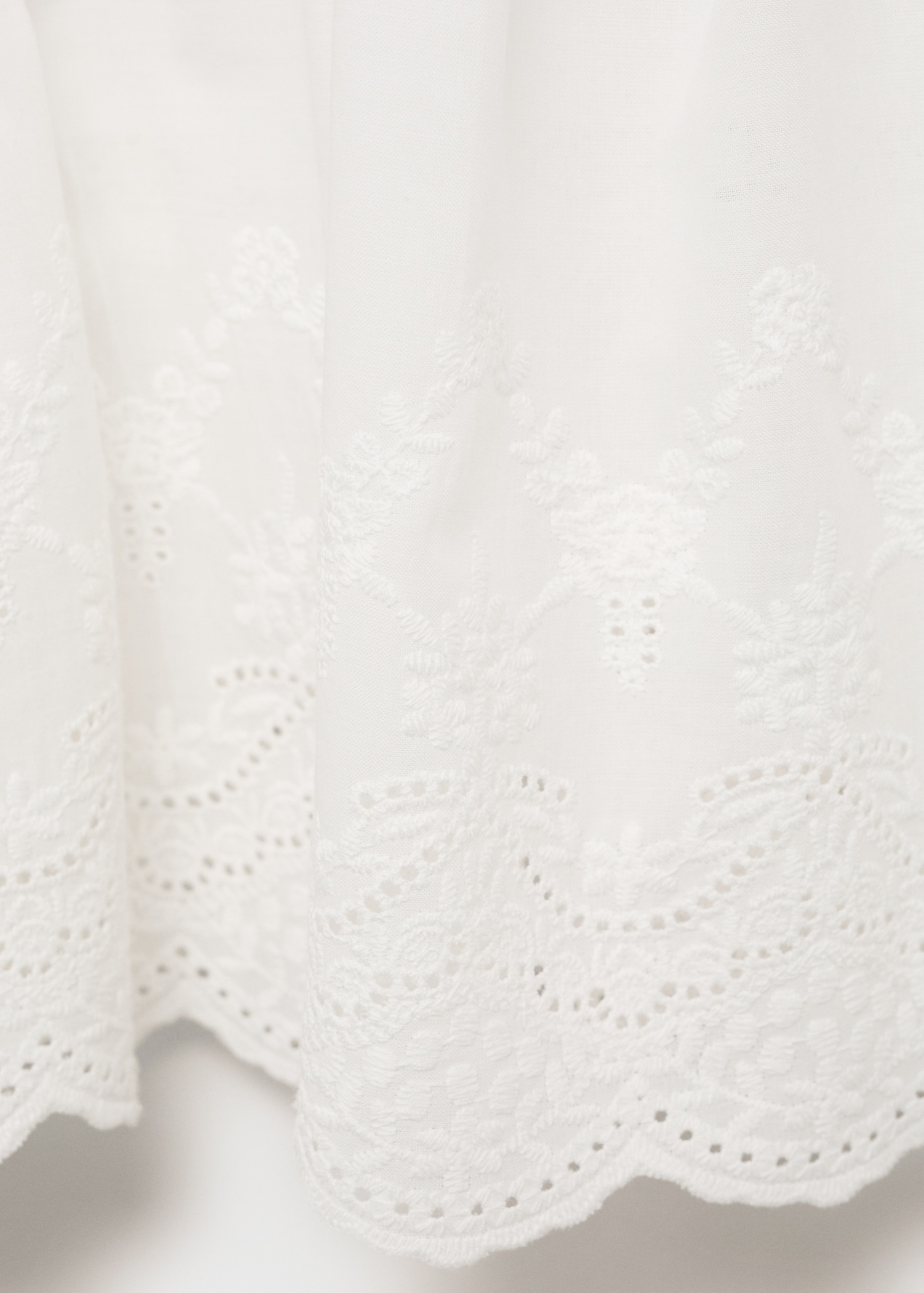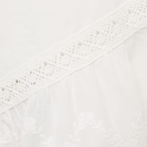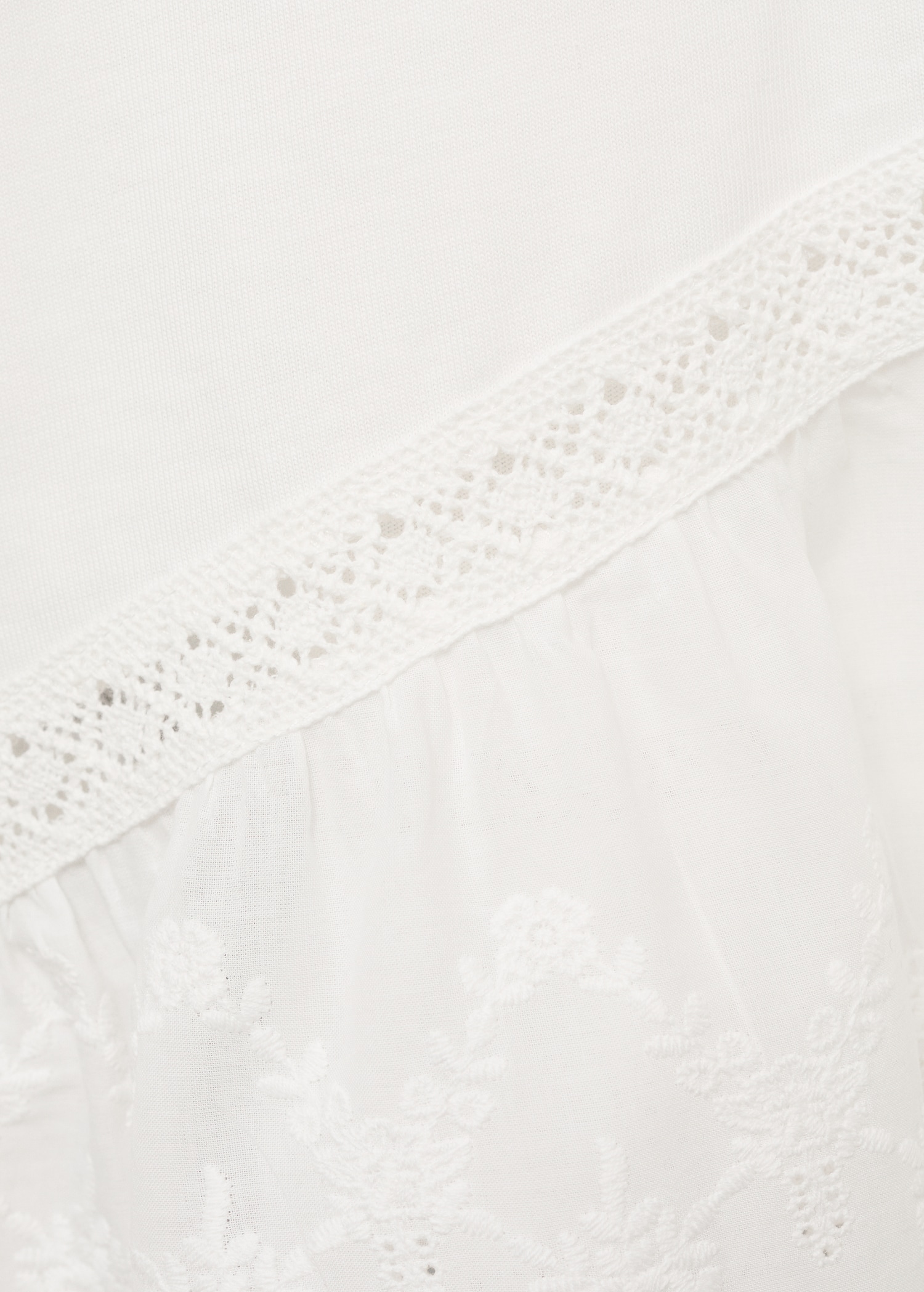 100% cotton fabric. Straight Design. Crew neck. Short sleeves. Embroidered ruffle. No closure