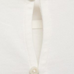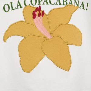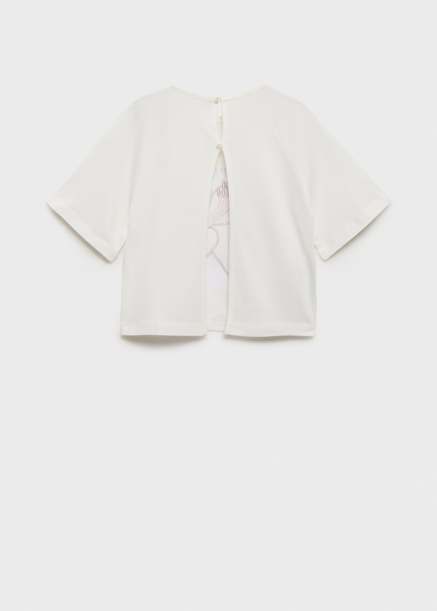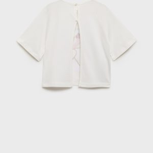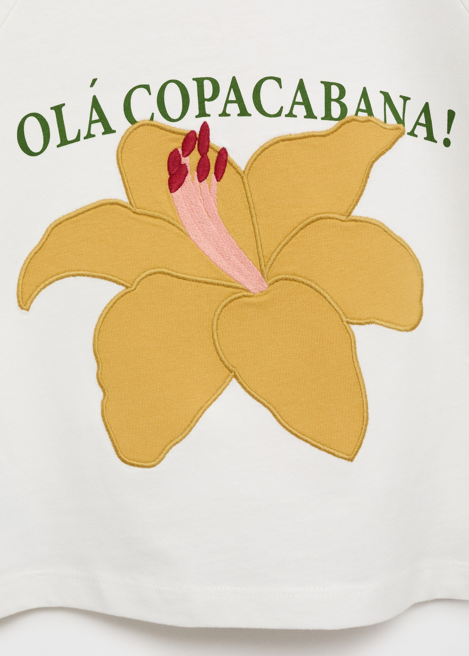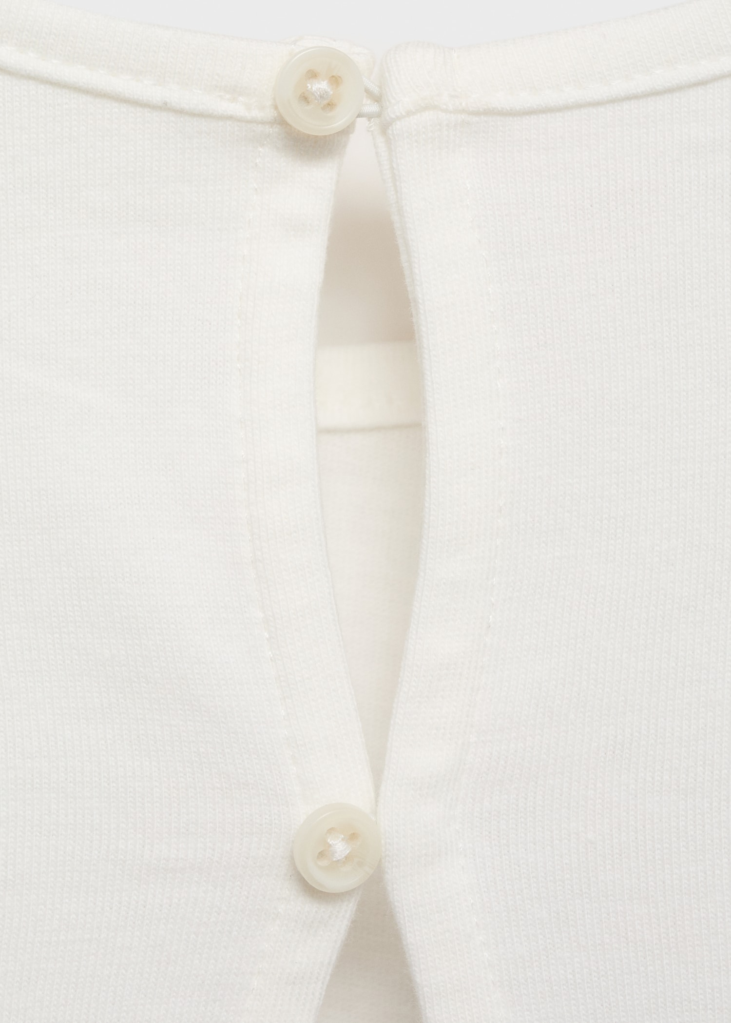 100% cotton fabric. Short design. Embroidered design. Floral embroidery. Crew neck. Short raglan sleeves. Back opening with button