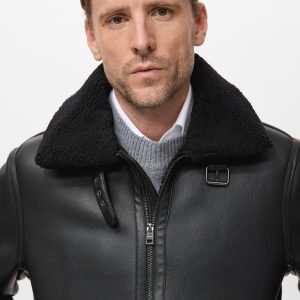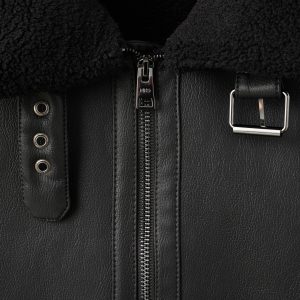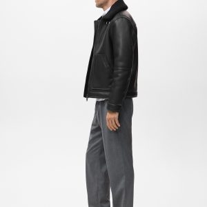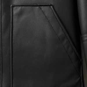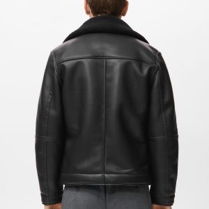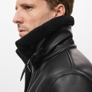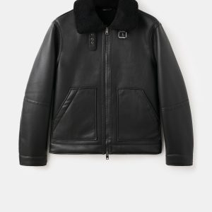 Party collection. Straight silhouette. Leather effect. Faux shearling collar. Adjustable strap on the neck. Faux shearling interior. Two side pockets. Long Sleeve