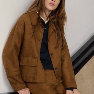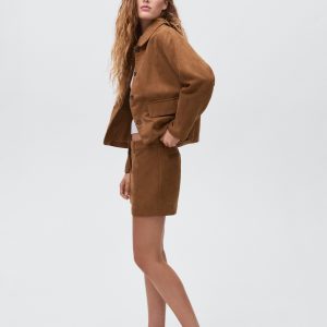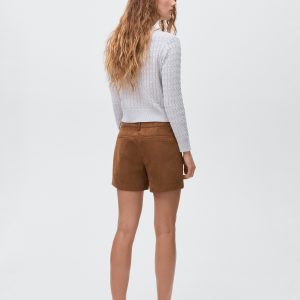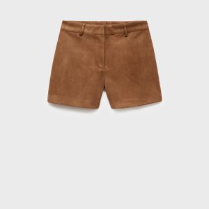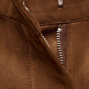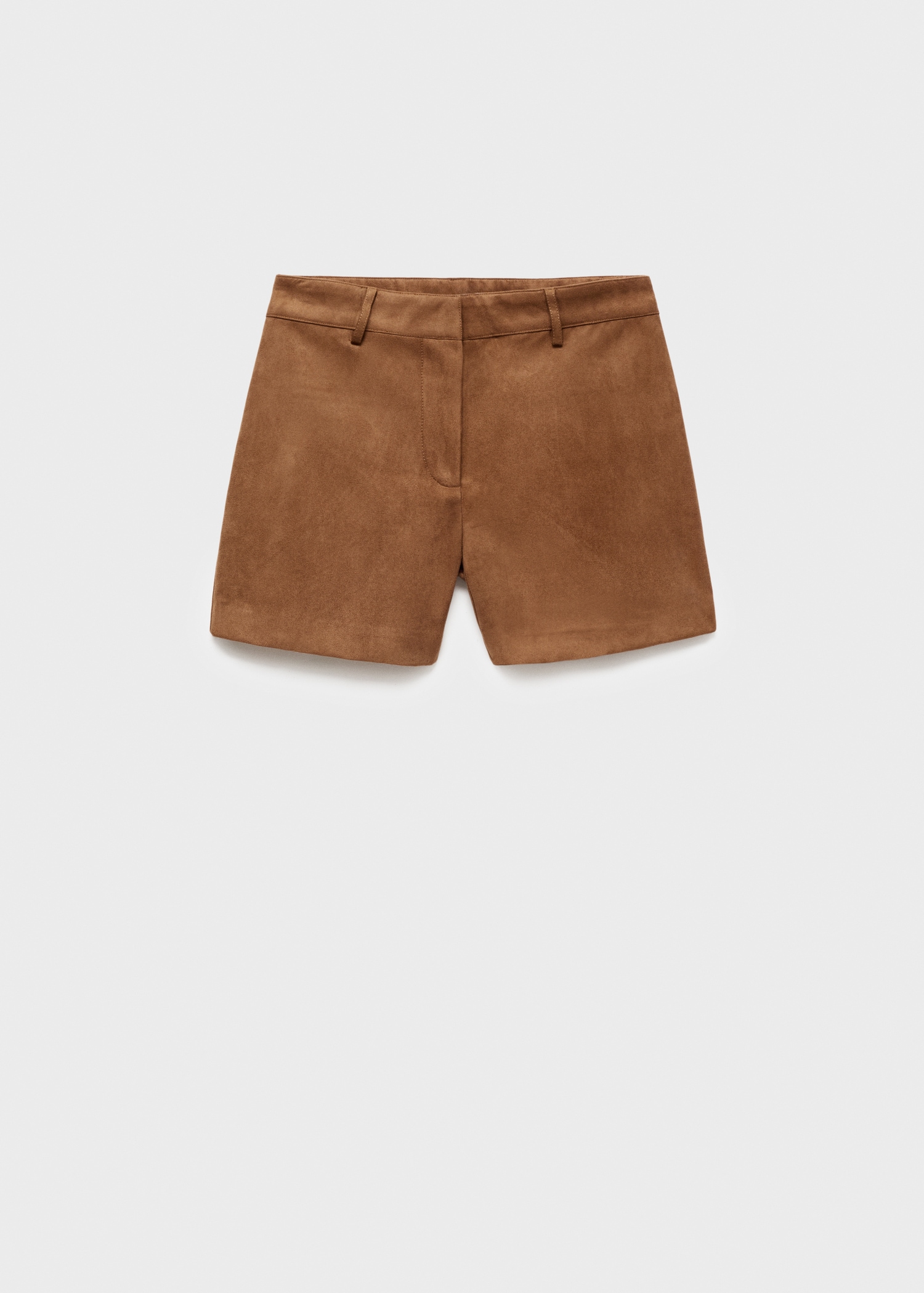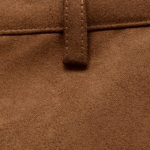 Suede fabric. Short design. Straight Design. Belt loops. Hook and zip fastening