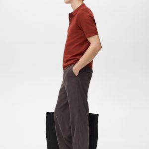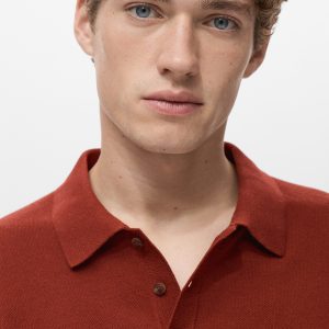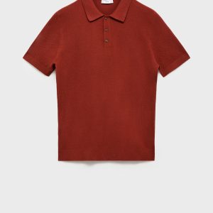 Khaki is an online exclusive. Straight silhouette. Cotton blend fabric. Fine-knit fabric with micro-structure. Polo collar with button closure. Short sleeve. Untrimmed sleeves. Straight hem. Slim fit. Short sleeves. Ribbed finishes on sleeve and hem. Promotional product
