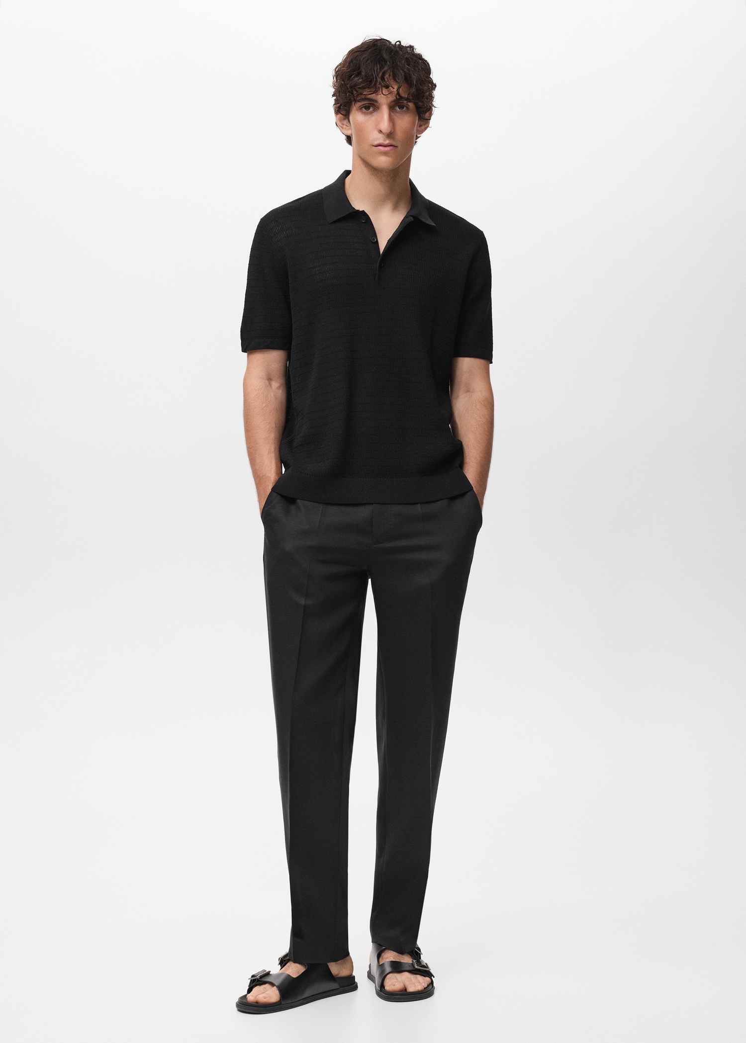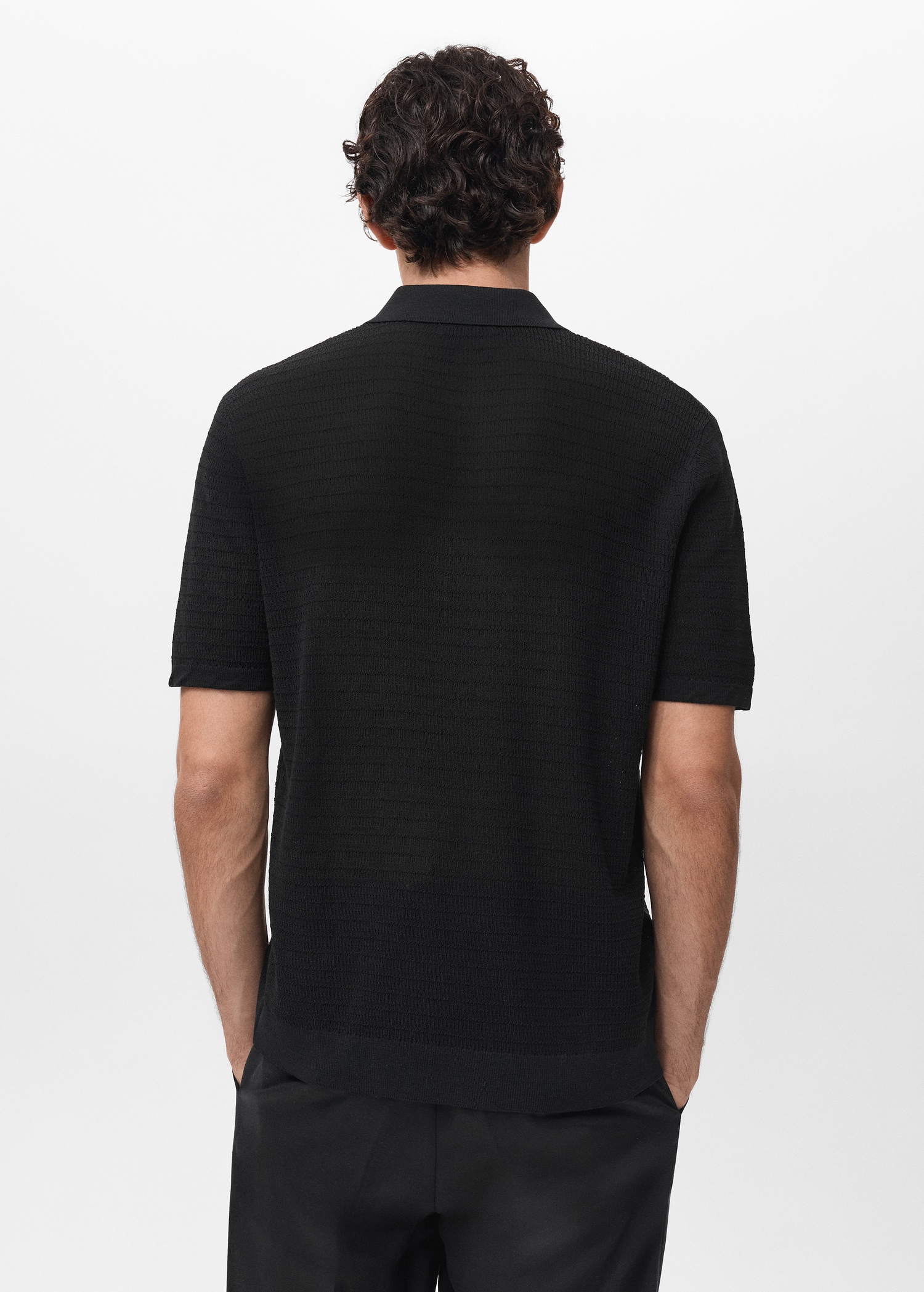 Fine knit fabric. Cotton blend fabric. Straight Design. Polo collar with button closure. Short sleeves. Promotional product