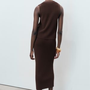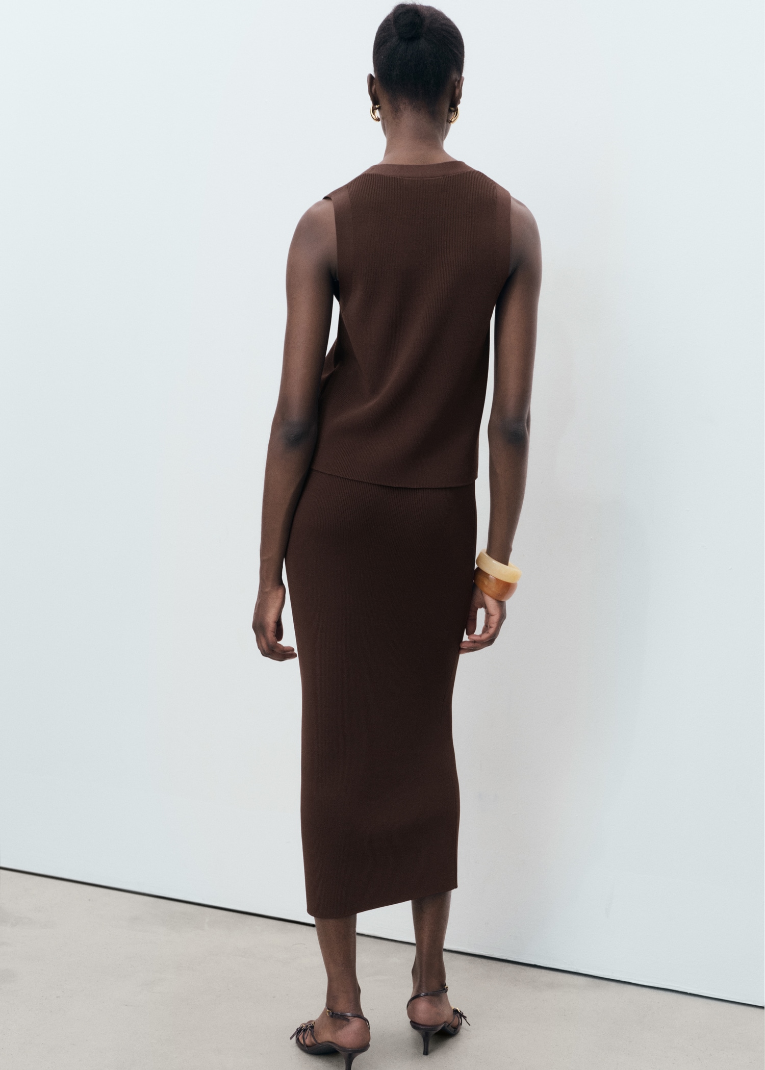 Crafted from a fine-knit fabric, this skirt features a straight design and mid-rise waist. Paired with a matching vest, it's ideal for a coordinated look. Available in Plus sizes