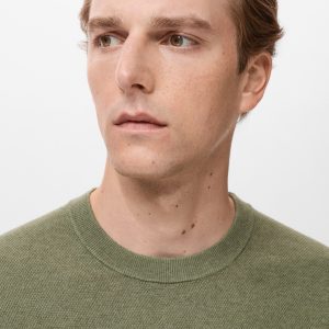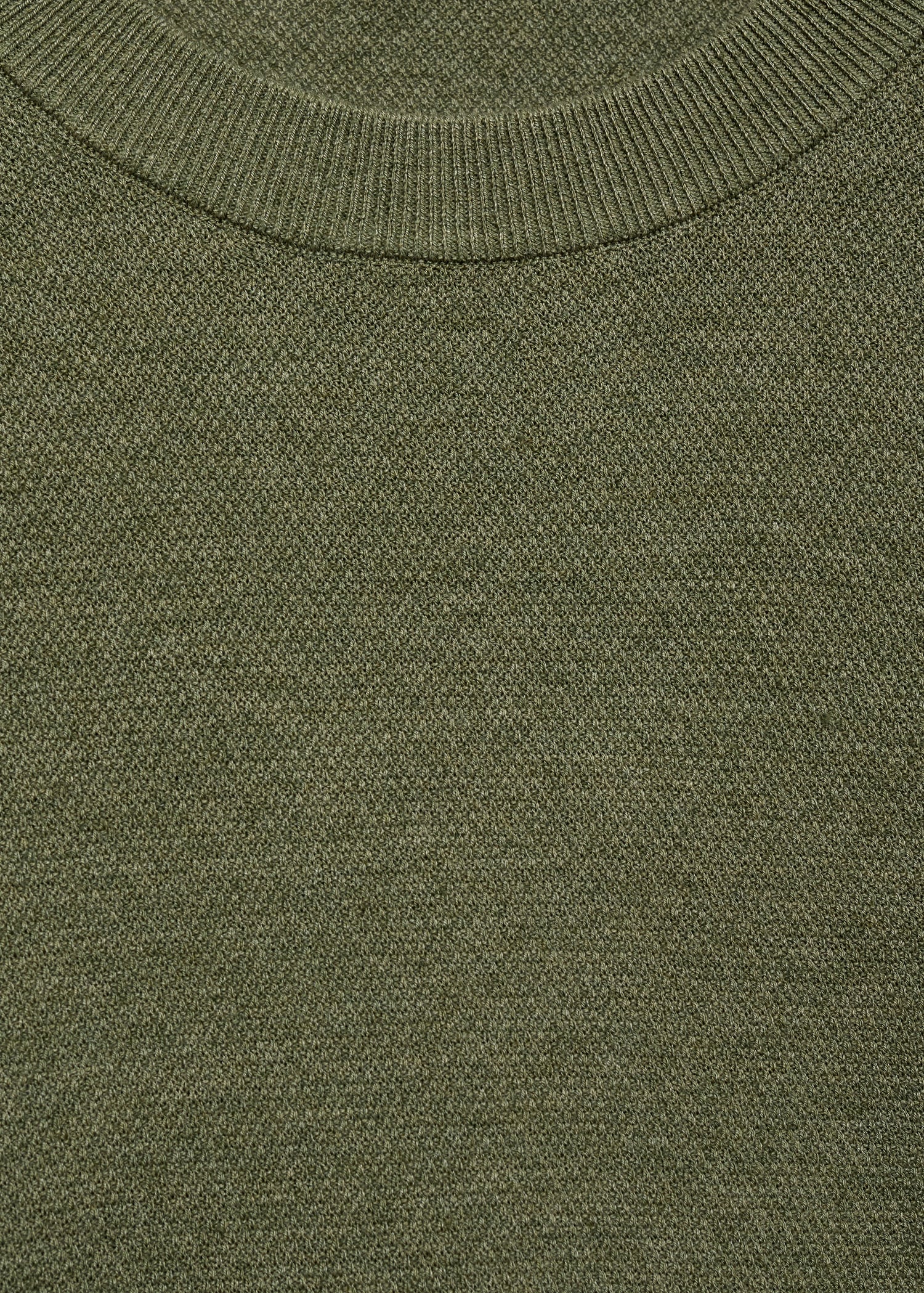 Fine knit sweater. Cotton blend fabric. Crew neck. Long sleeves with elastic cuffs. Untrimmed hem. Straight hem. Promotional product