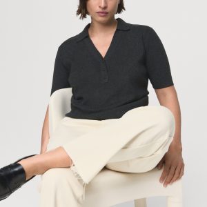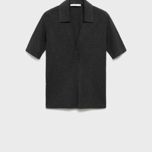 Crafted from fine-knit fabric, this tailored design features a buttoned shirt collar and short sleeves. Available in Plus Size