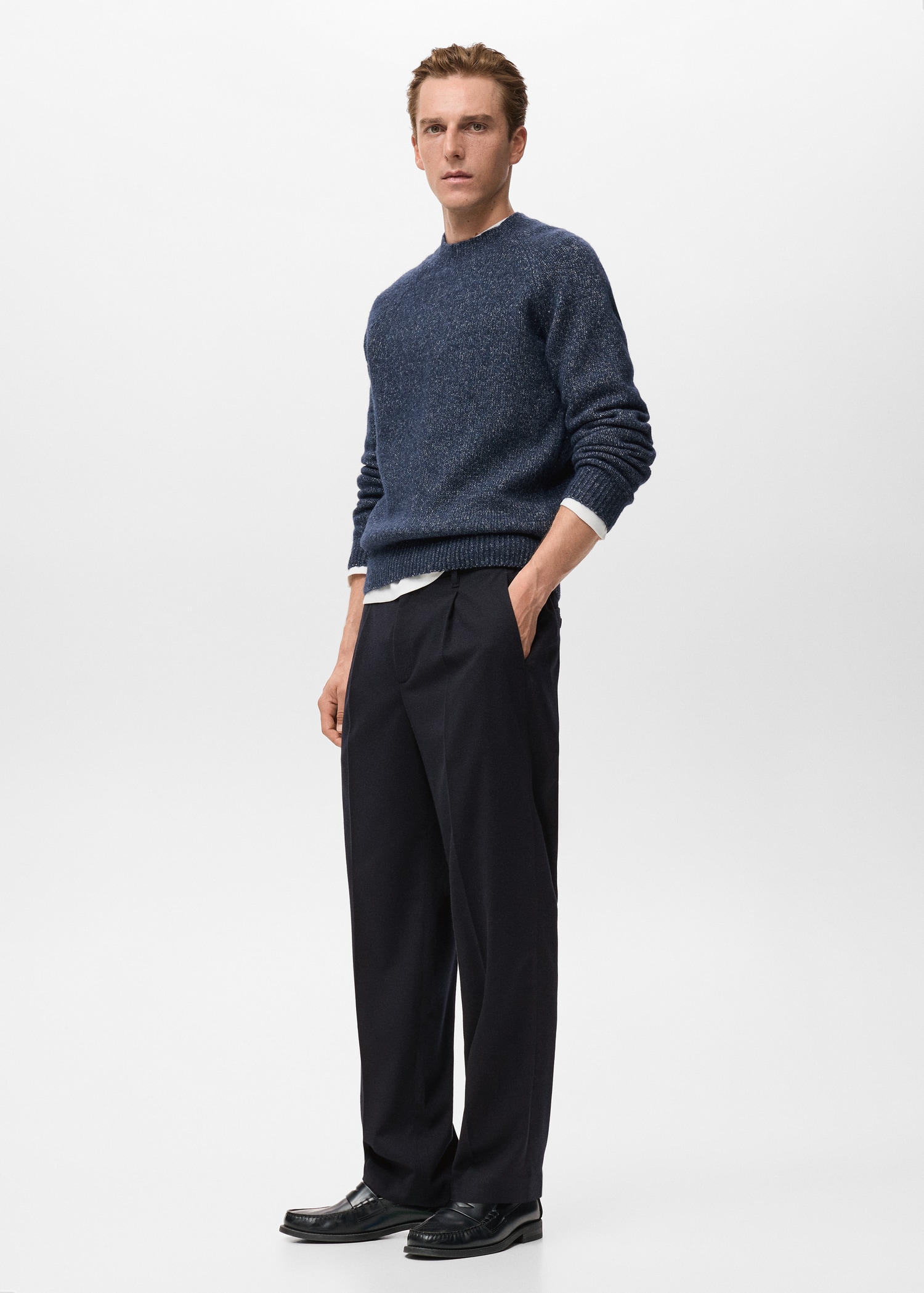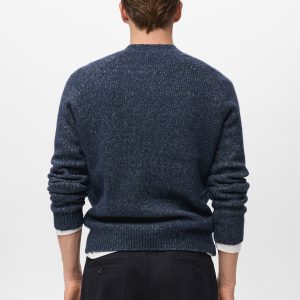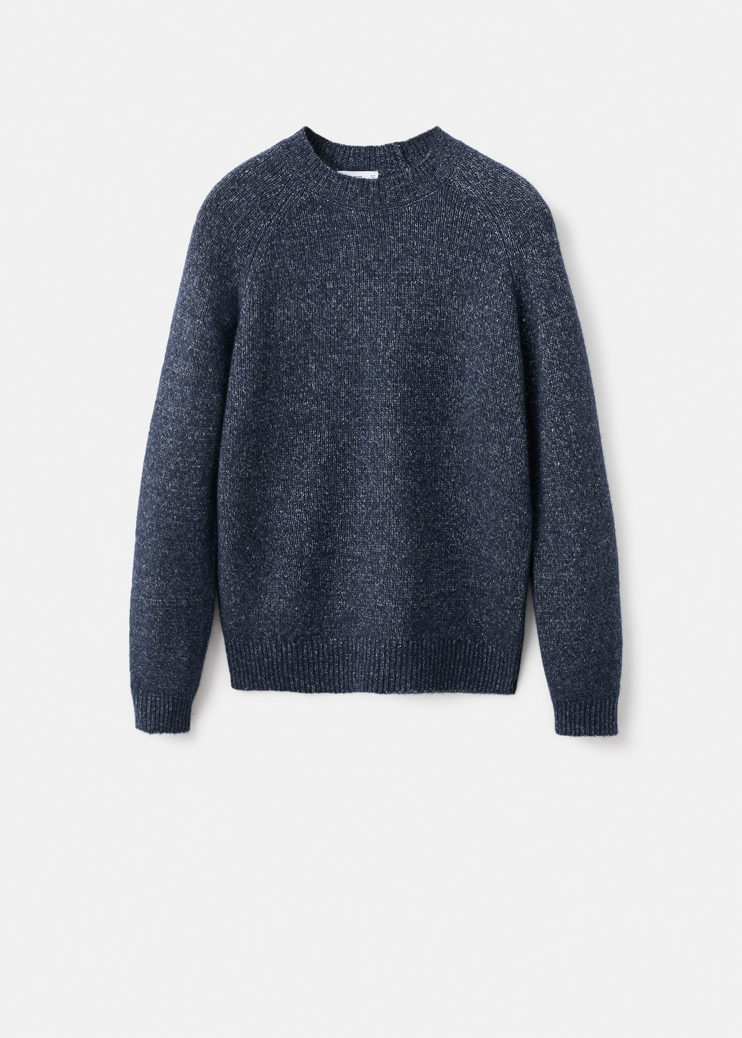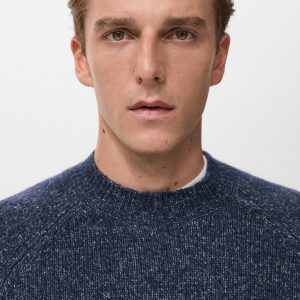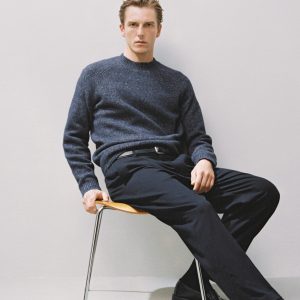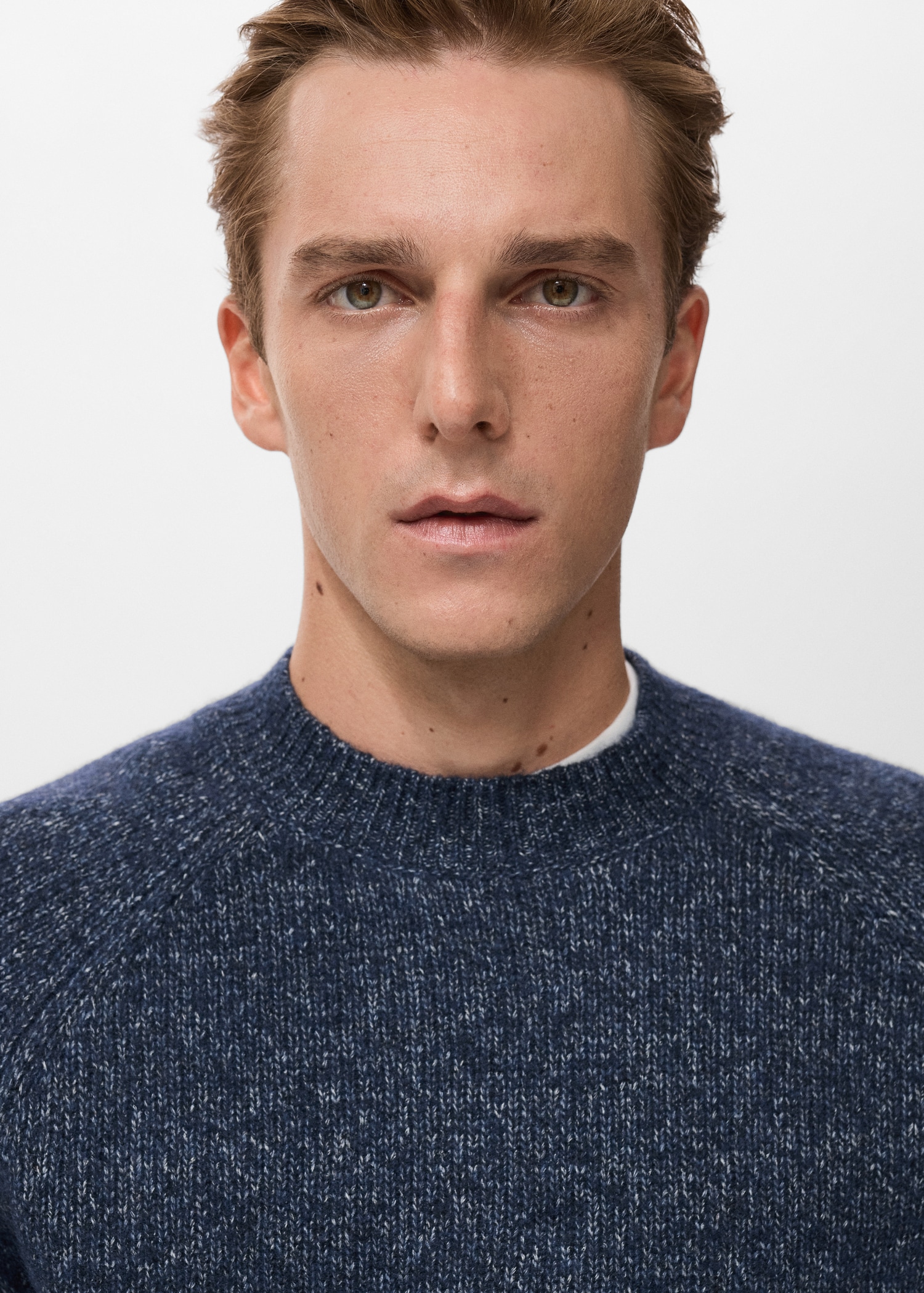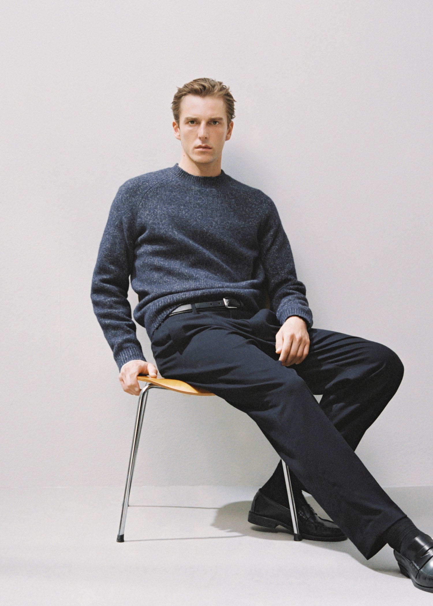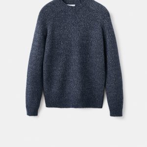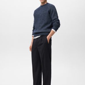 The blue color is an online exclusive. Cotton and wool mix. Straight silhouette. Crew neck. Ribbed neck, cuffs, and hem. Long sleeves with elastic cuffs