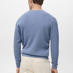 Regular fit. Cotton blend fabric. Cable knit fabric. Crew neck. Long sleeves with elastic cuffs. Straight hem. Untrimmed hem. The chocolate brown and sky blue models are online exclusives. Fine knit fabric. Ribbed design. Standard Length. Long Sleeve. Straight Silhouette. Round Lapel Collar. Fine Knit Structure. Promotional product