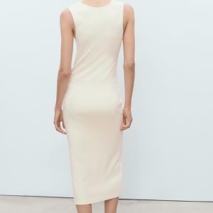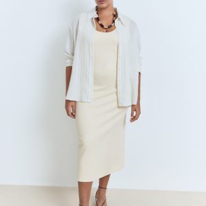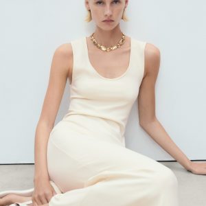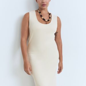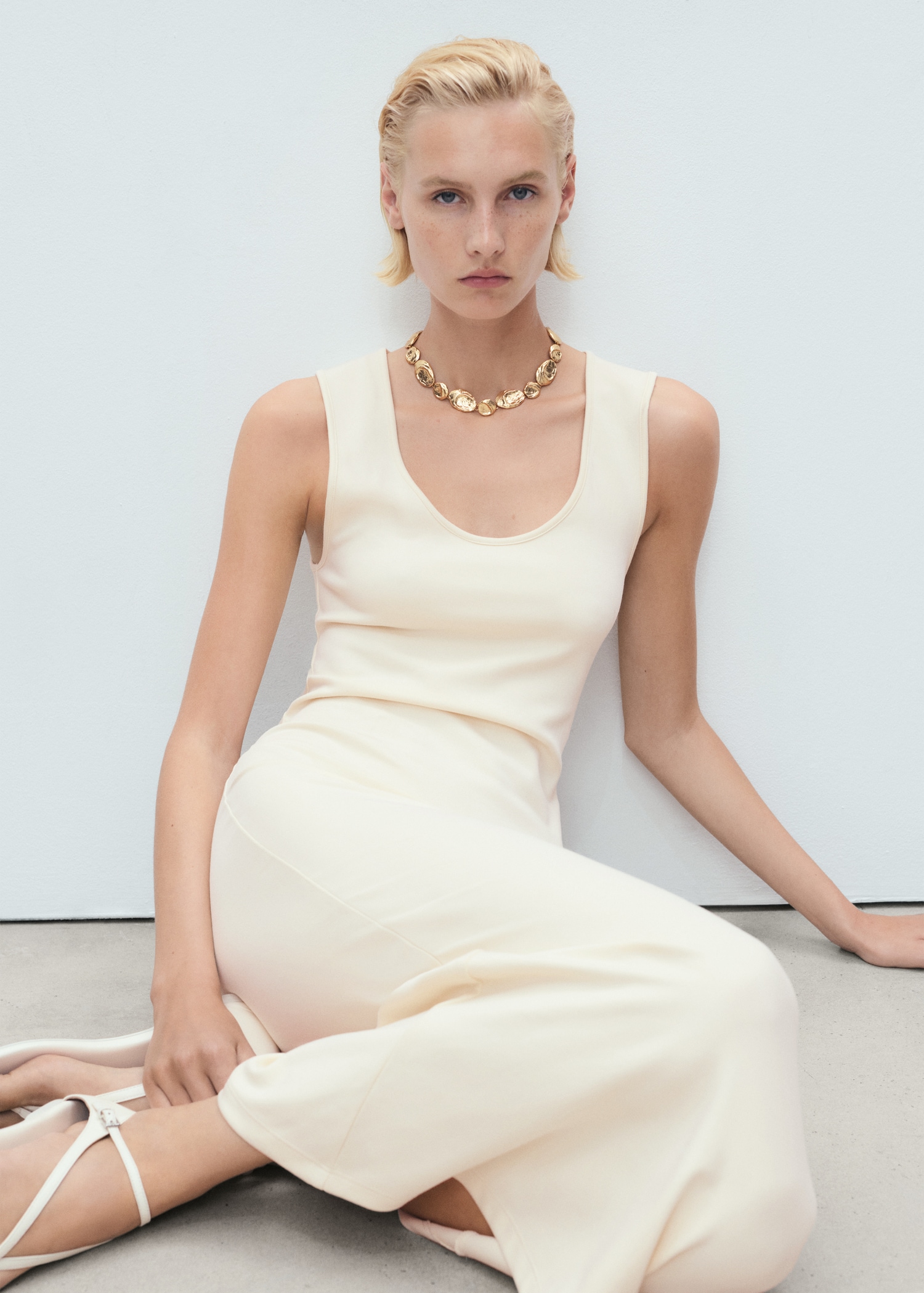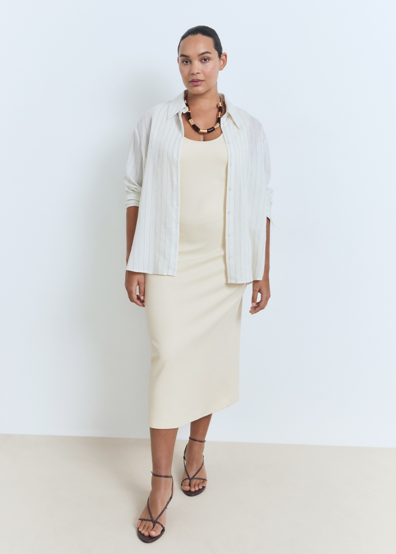 Midi design. Fitted design. Scoop neck. Sleeveless. Wide straps. No closure. The blue model is available in plus size. This garment is part of our casual collection, designed to stylishly accompany you in your day-to-day life
