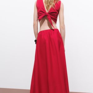 100% cotton fabric. Long design. A-line design. Mid-rise. Two side pockets. Side zip closure. Total look
