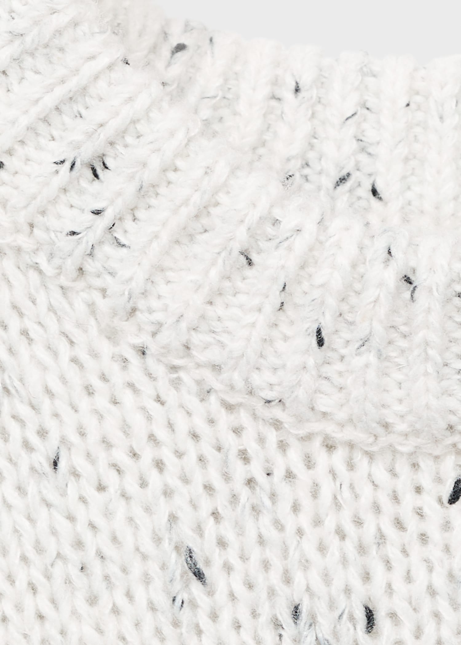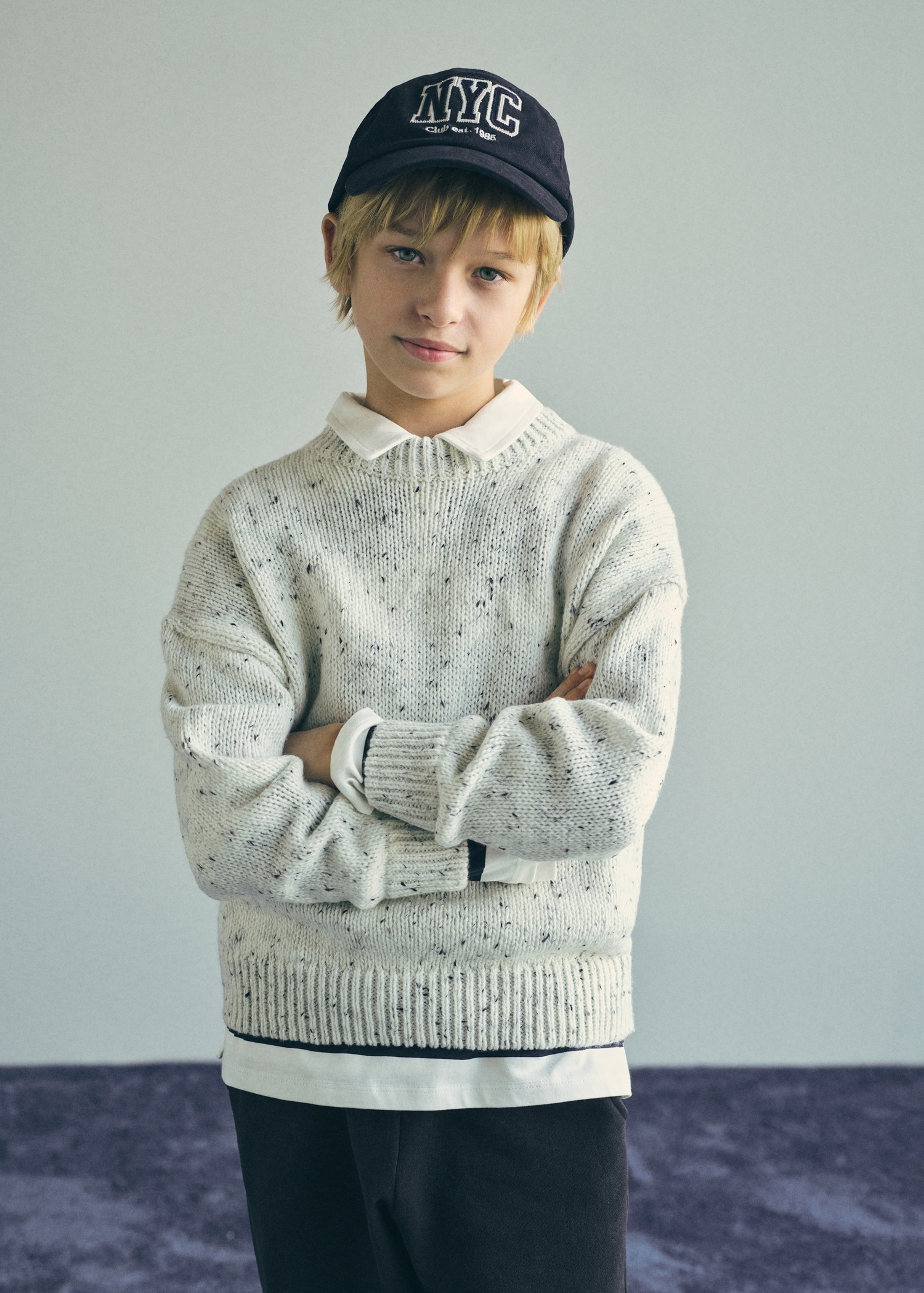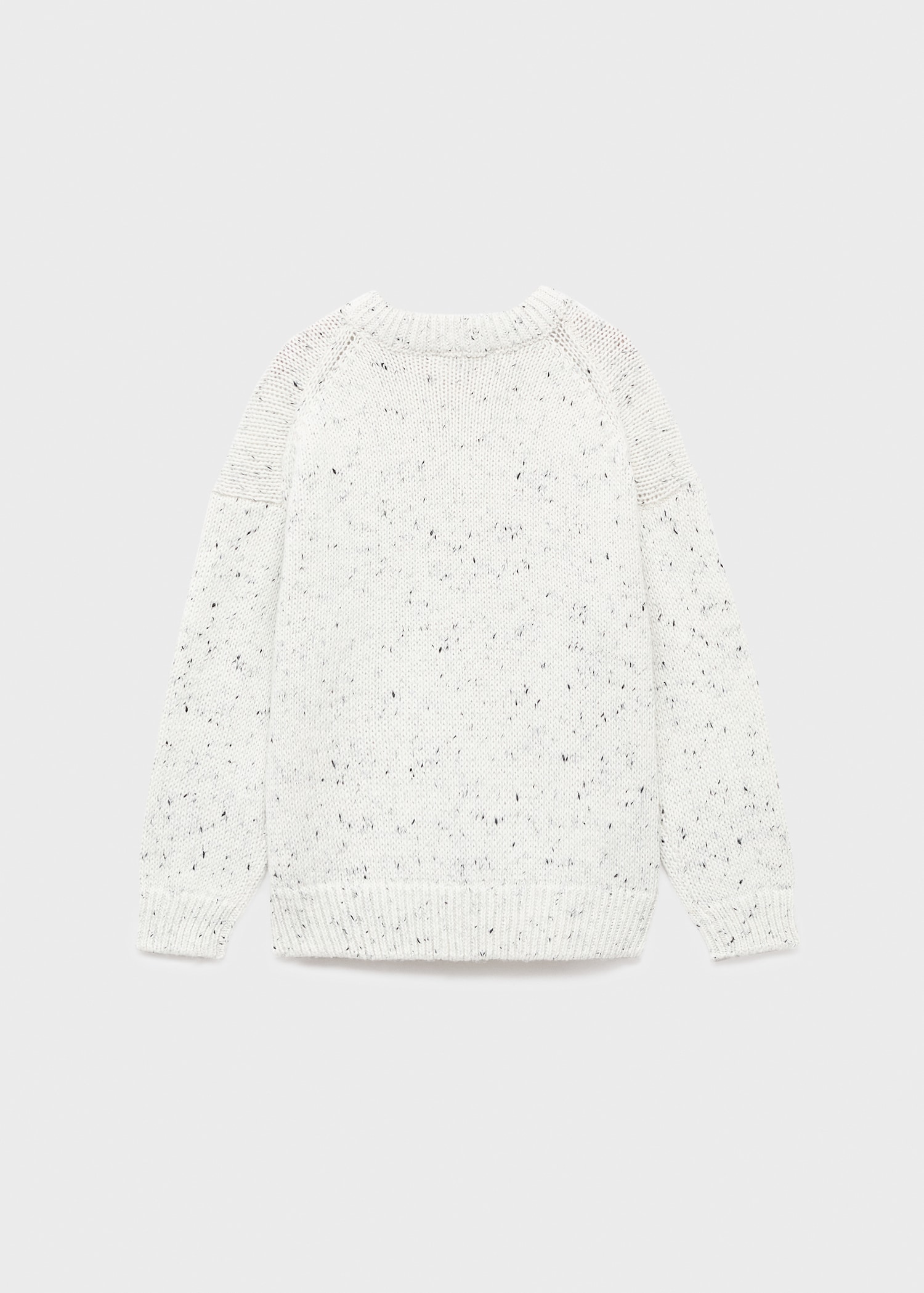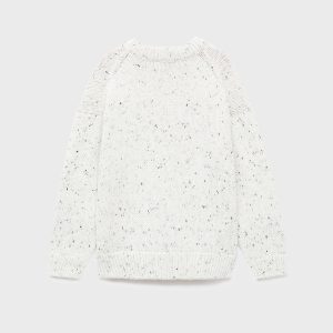 Speckled jacquard. Knitted fabric. Wool fabric. Straight Design. Crew neck. Long Sleeve. Ribbed neck, cuffs, and hem