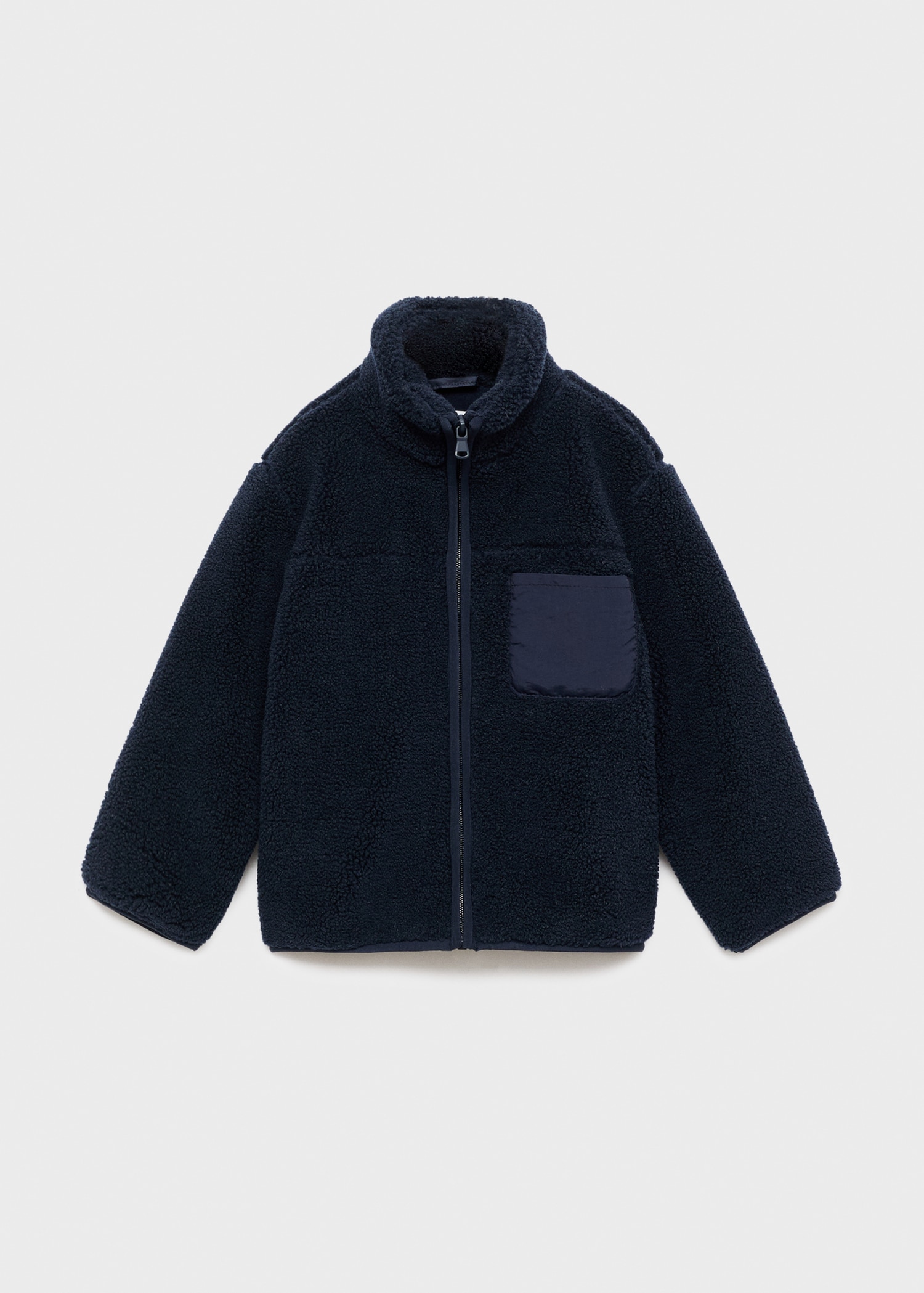 Polar fleece fabric. Polyester fabric. Straight Design. Perkins collar. Zipper closure. Two side pockets. Patch pocket on the chest
